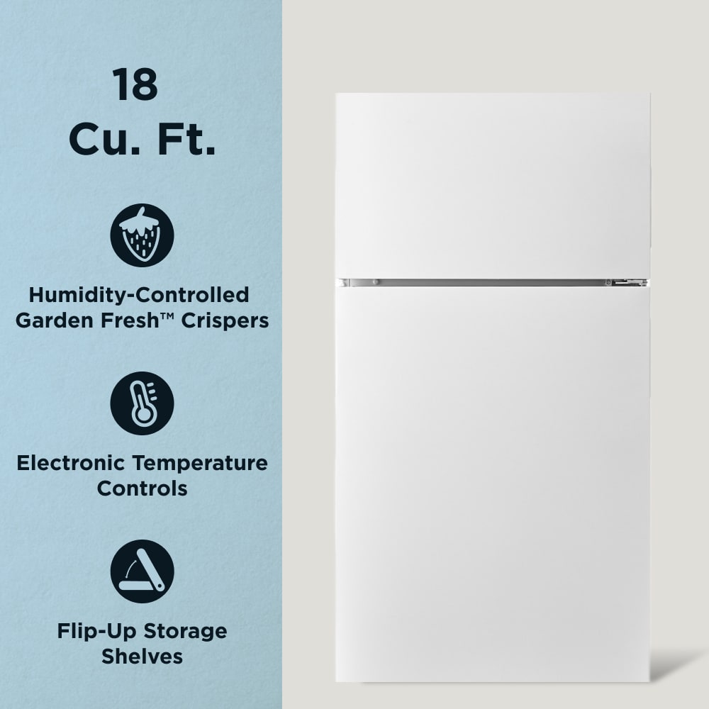 Experience the benefit of Garden Fresh™ Crisper Bins. This Amana® Top- Freezer Refrigerator comes with humidity-controlled, Garden Fresh™ Crisper Bins that help greens stay green, so you can spend less time doing grocery runs. Plus, you can fill your fridge just how you like it with the Gallon Door Storage Bins and the adjustable Flip-Up Storage Shelf.
