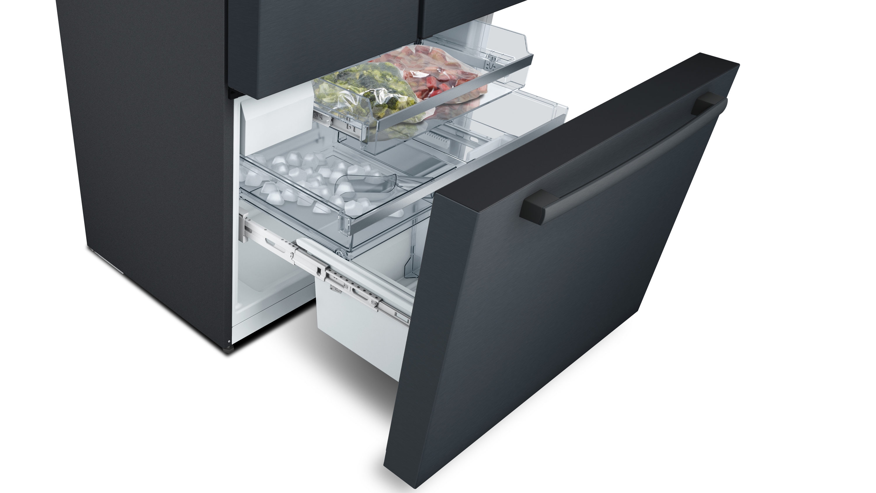 Introducing the revolutionary, Bosch counter-depth refrigerators, with a streamlined interior and advanced freshness system designed to keep the ingredients you love fresher longer. Enjoy less food waste, and more thoughtful design. Our revolutionary FarmFresh System combines four innovative technologies designed to take food preservation to the next level, while minimizing food waste. Working in harmony, the (1) VitaFreshPro, (2) FreshProtect Ethylene Filter, (3) MultiAirFlow, and (4) AirFresh Filter provide the optimal environment for your food storage needs. An industry first, VitaFreshPro automatically balances BOTH temperature and humidity. From produce to meats to cheeses, pre-programmed settings calibrate the optimal environment, removing the guesswork from food storage. FreshProtect absorbs naturally occurring ethylene to slow ripening, so produce stays fresher, longer. MultiAirFlow and AirFreshFilter work together to keep the temperature in your entire fridge consistent while reducing odors. It’s refrigeration, reinvented.
