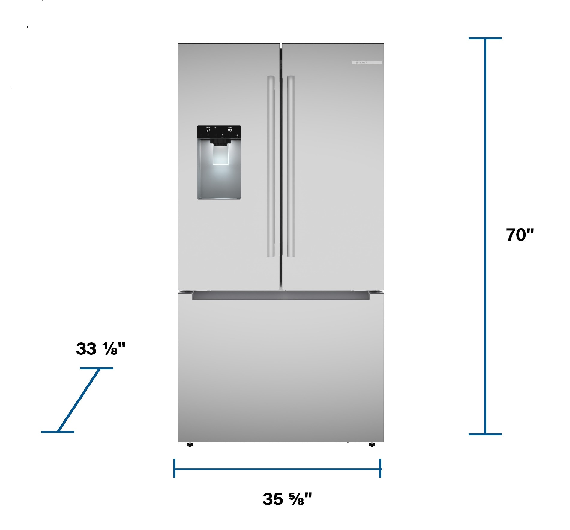 Bosch Fastest Ice Maker Standard-Depth 300 Series 26-cu ft 3 -Door Smart Compatible French Door Refrigerator with Ice Maker with Water and Ice Dispenser ( Stainless Steel ) ENERGY STAR Certified