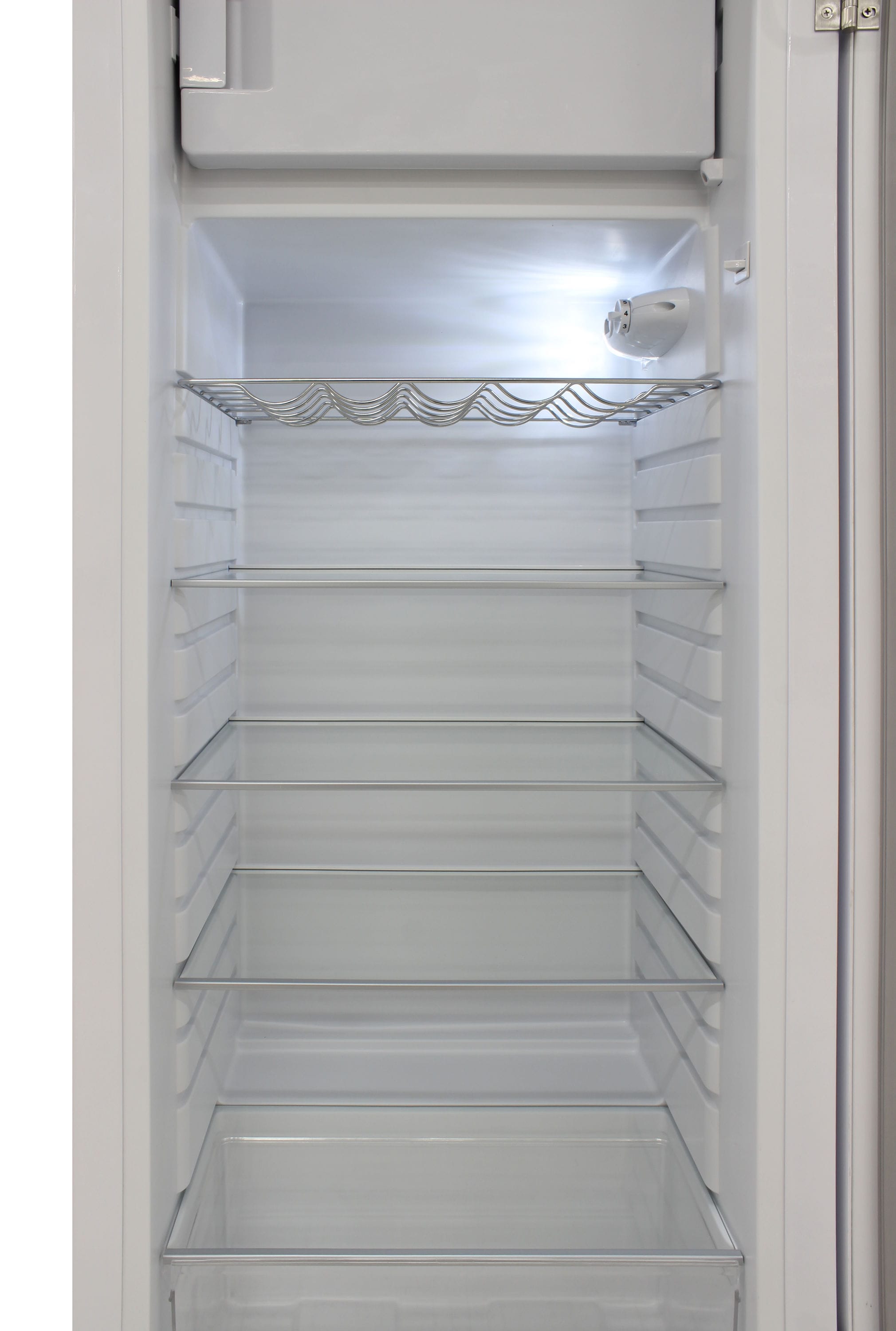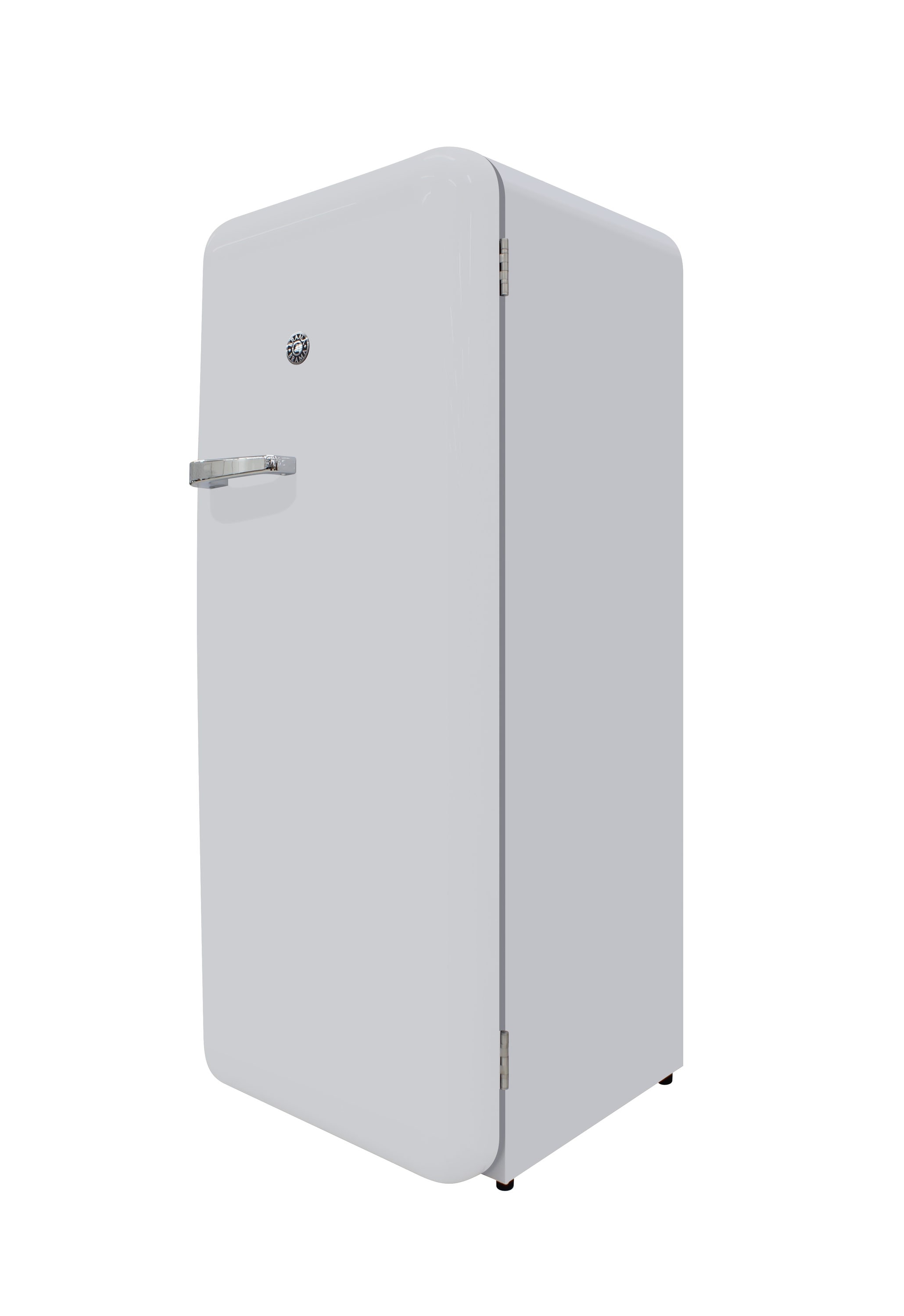 Keep all of your goods at the perfect serving temperature with the Brama Retro Refrigerator. This unit features a top freezer, interior light, open storage with 4 pull-out shelves including one metal wire racking, bottom bulk storage, and 4 rows of small storage behind the door. The white, rounded exterior with solid steel door gives a retro and modern look and makes a perfect addition to to any space.