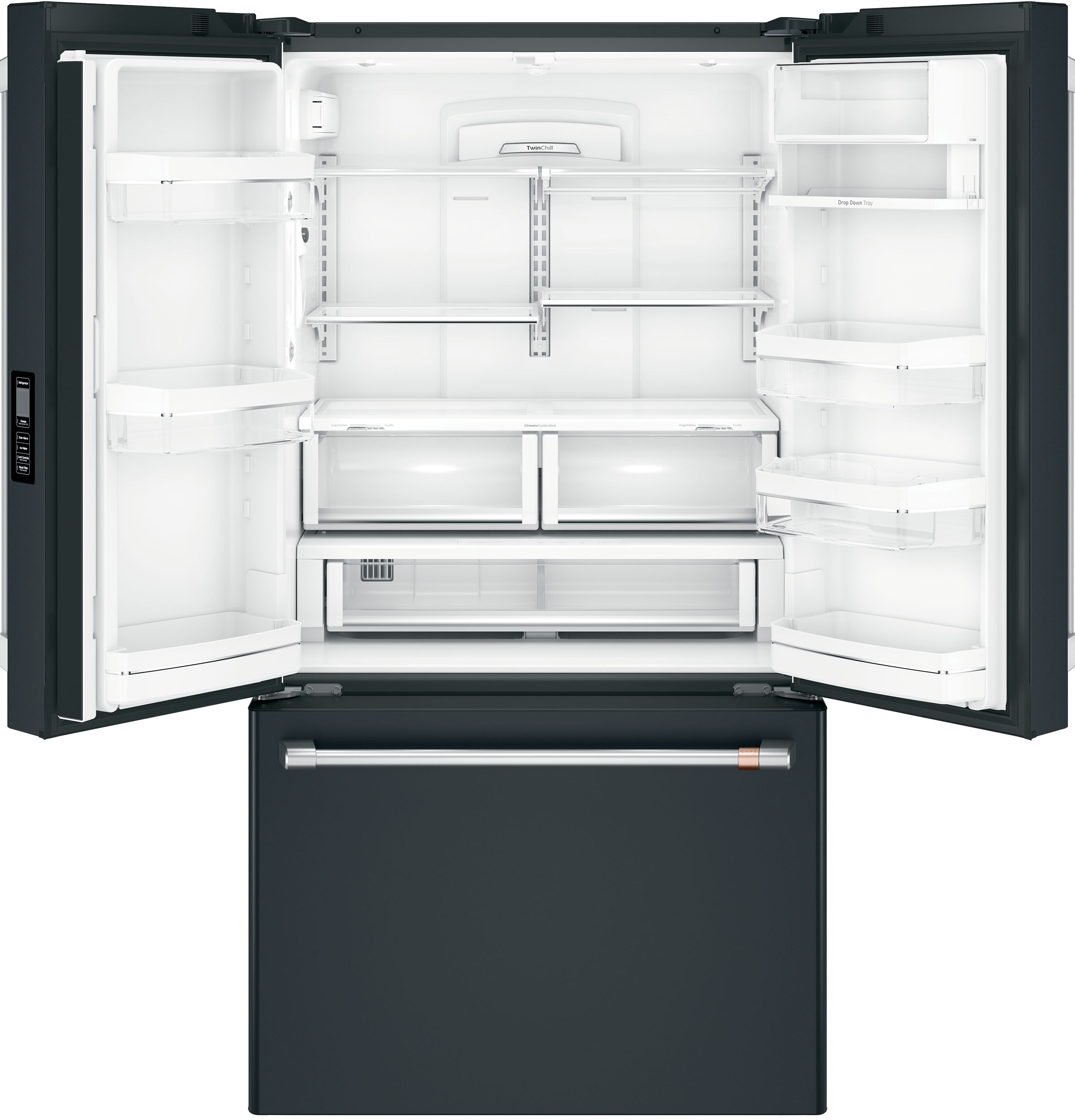 Cafe Counter-Depth 23.1-cu ft 3 -Door Smart Compatible French Door Refrigerator with Ice Maker with Water Dispenser ( Matte Black ) ENERGY STAR Certified