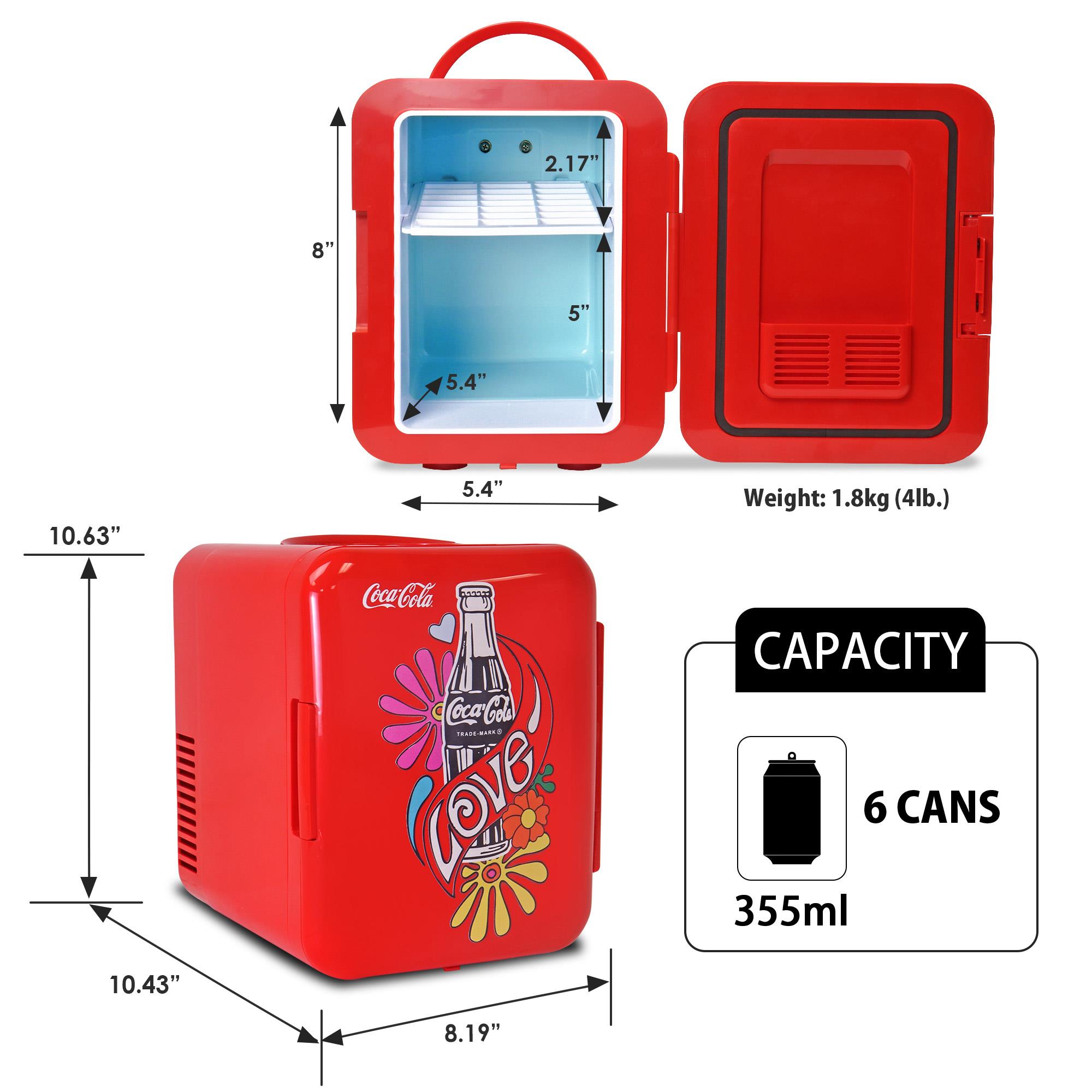 The Coca-Cola Vintage 4L mini fridge is a top-notch choice for Coca-Cola collectors worldwide! Ideal for home, nursery, office, or dorm room use, this compact mini fridge stands out as the ultimate desk accessory. With the capability to hold six (6) 12-ounce cans, its renowned thermoelectric cooling system excels in beverage cooling, while its noteworthy warming function adds to its versatility. Streamline your mornings by taking your breakfast on the go, or save money by packing a warm lunch to enjoy throughout the day with this Coca-Cola Vintage 4L mini fridge.