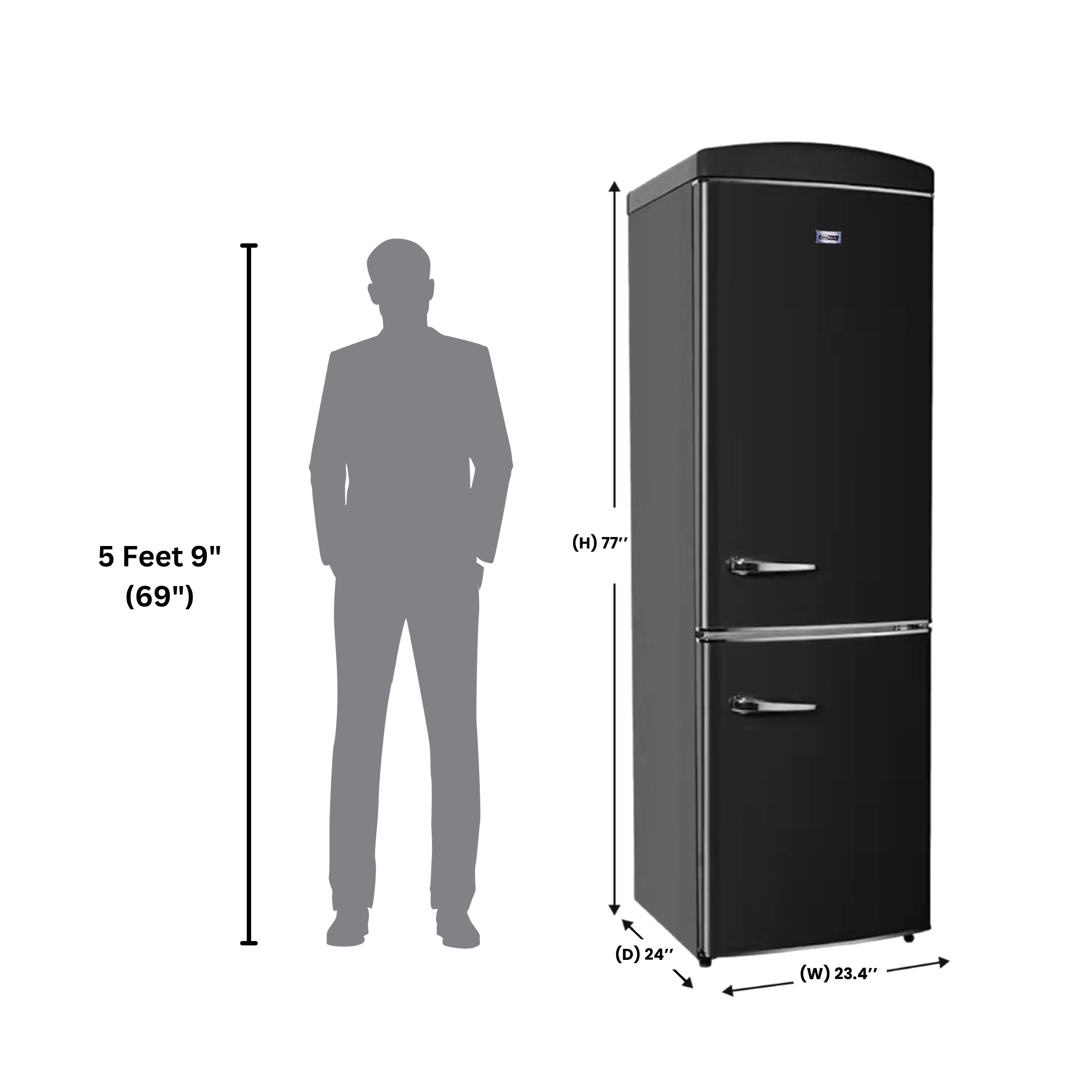 The Conserv Two Door retro 10.7 cu. ft. bottom mount refrigerator is the perfect combination of style and function to keep your food fresh in a compact space. Available in retro red, black, and cream exterior colors, the slimline refrigerator comes with 3 glass shelves in the refrigerator section and 3 freezer bins to keep freezer items organized for easy access. The Conserv retro refrigerator also comes with 4 door racks and electronic temperature controls with Fast Cool and fast Freeze options to bring temperatures down quickly. The attractive freestanding refrigerator measures 77 x 24 x 28 inches and is equipped with an interior LED light for convenient illumination of stored food items. It uses R600a refrigerant and 110V electricity and is et certified and protected by Conserv’s 1 Year Parts and Labor warranty.
