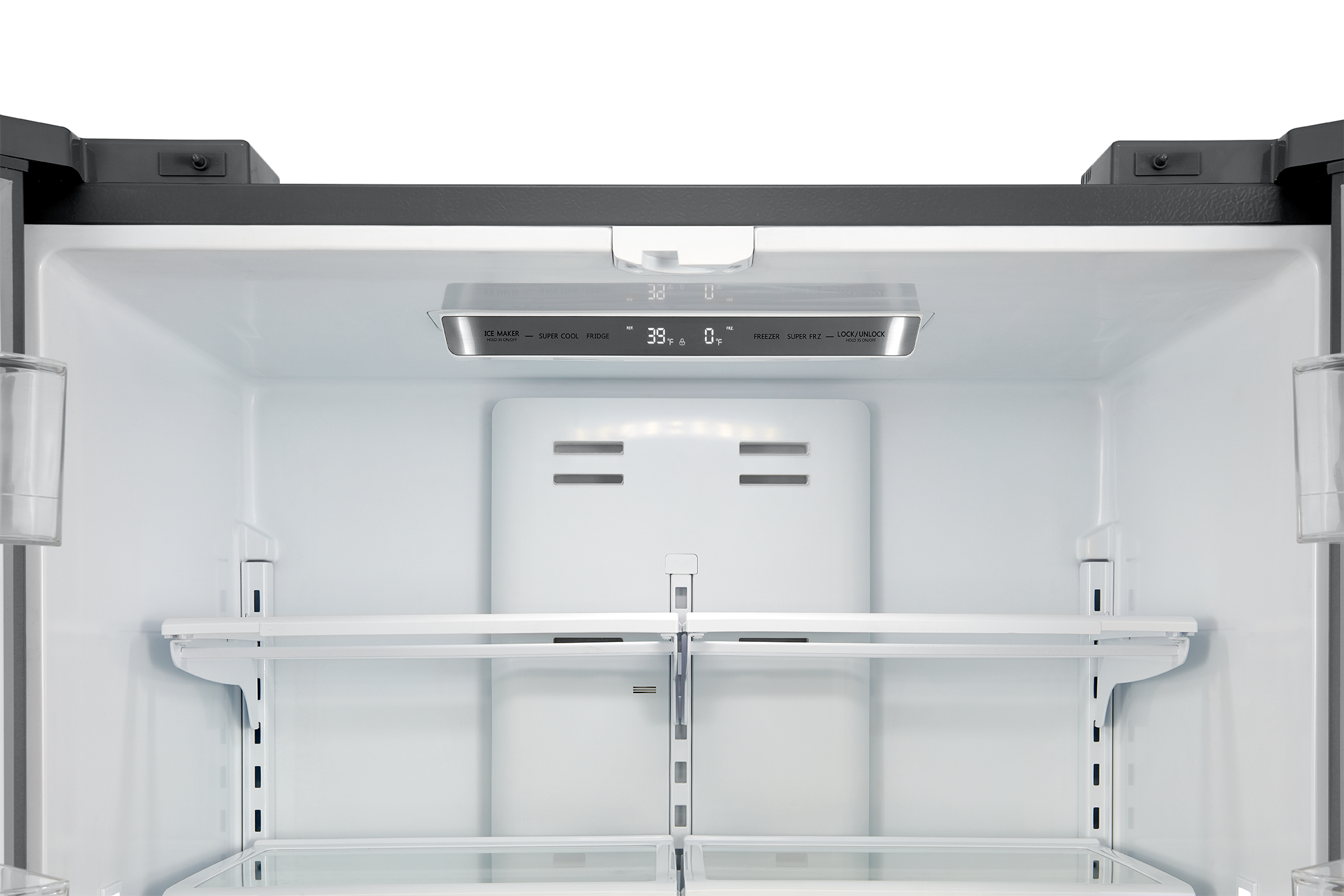 A door alarm feature will gently beep when refrigerator doors are left ajar for more than 2 minutes to ensure energy efficiency and longer service life