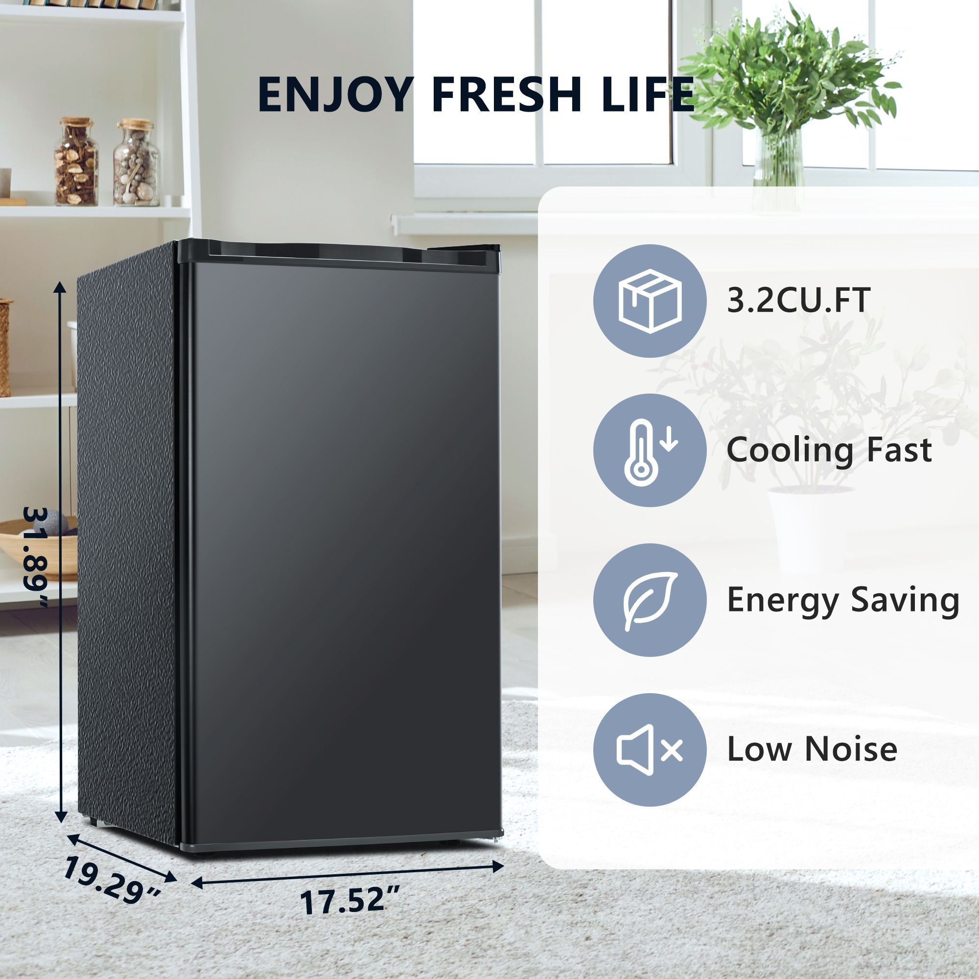 Euhomy 3.2 Cu.Ft Single Door Black Mini Fridge with Freezer