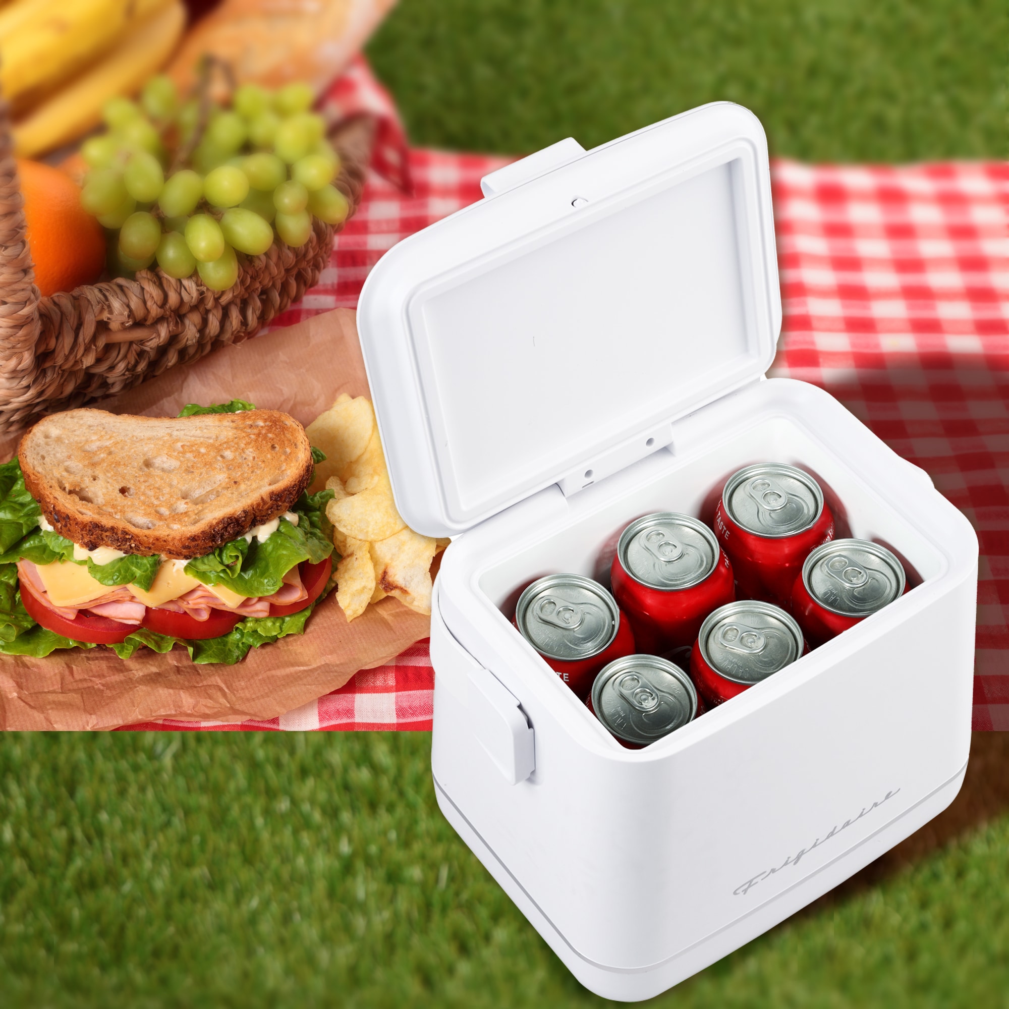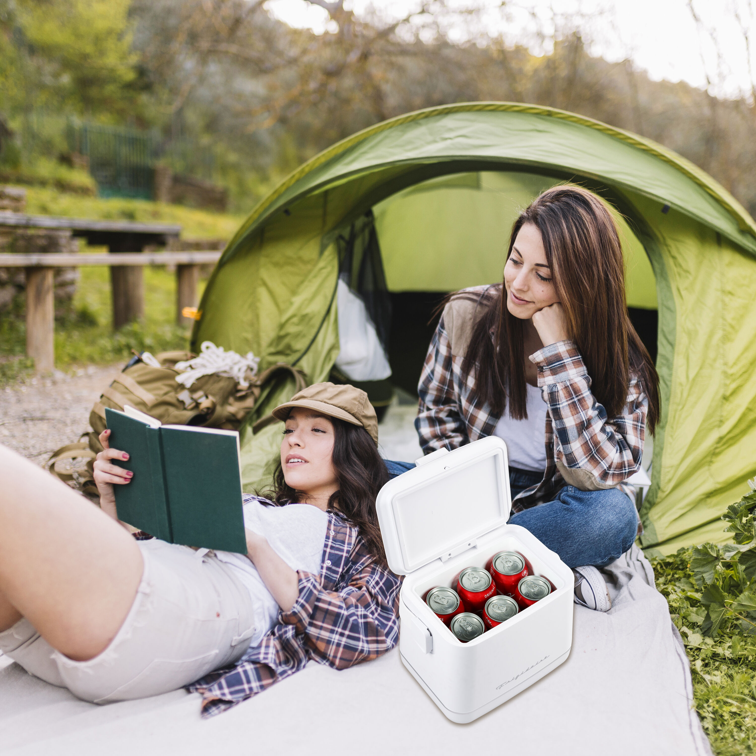 This mini fridge has a thermoelectric cooling system and is fully insulated to act as a portable cooler for 8 hours, ideal for all your needs.