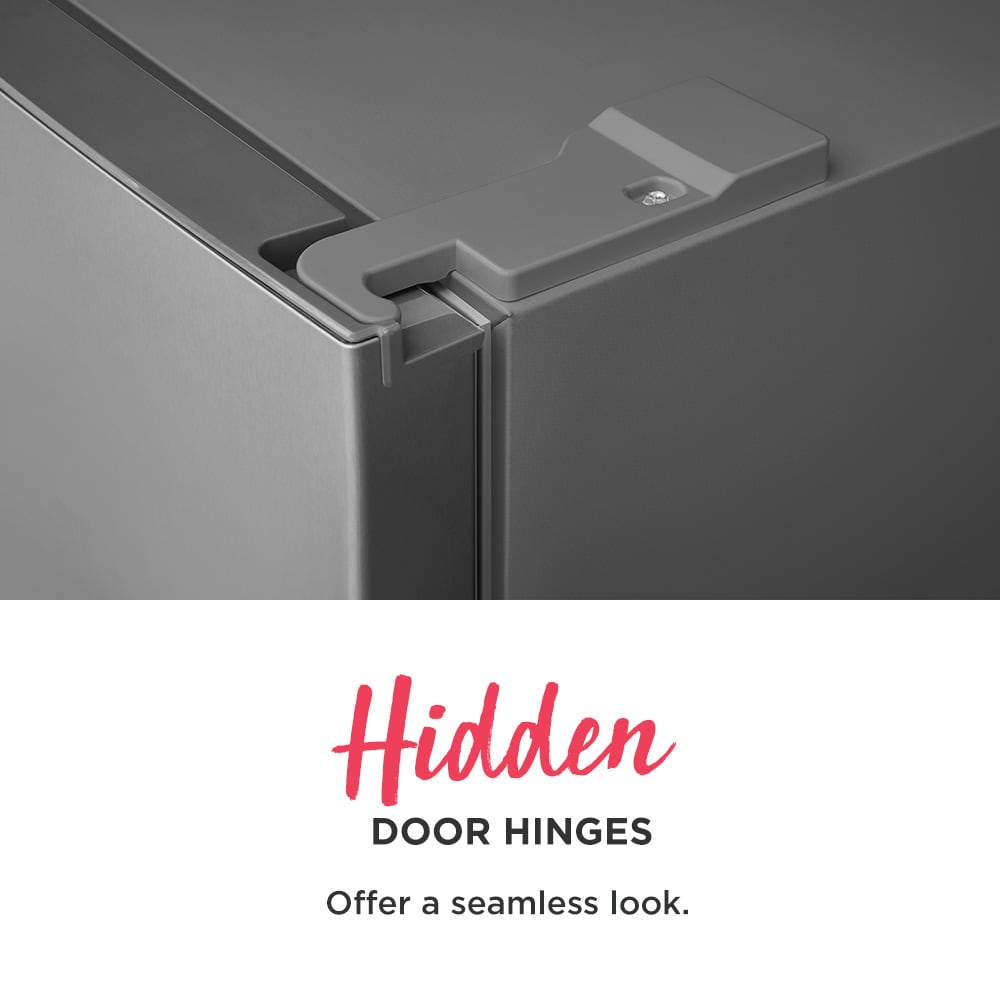 The Frigidaire 10.1 cu. Ft. apartment-size top freezer refrigerator has adjustable shelving and humidity control crisper drawers for storing fruits and vegetables. It is also equipped with bright lighting to keep contents clearly visible. E-star certification saves on energy costs and reversible doors and rear rollers accommodate your installation needs.
