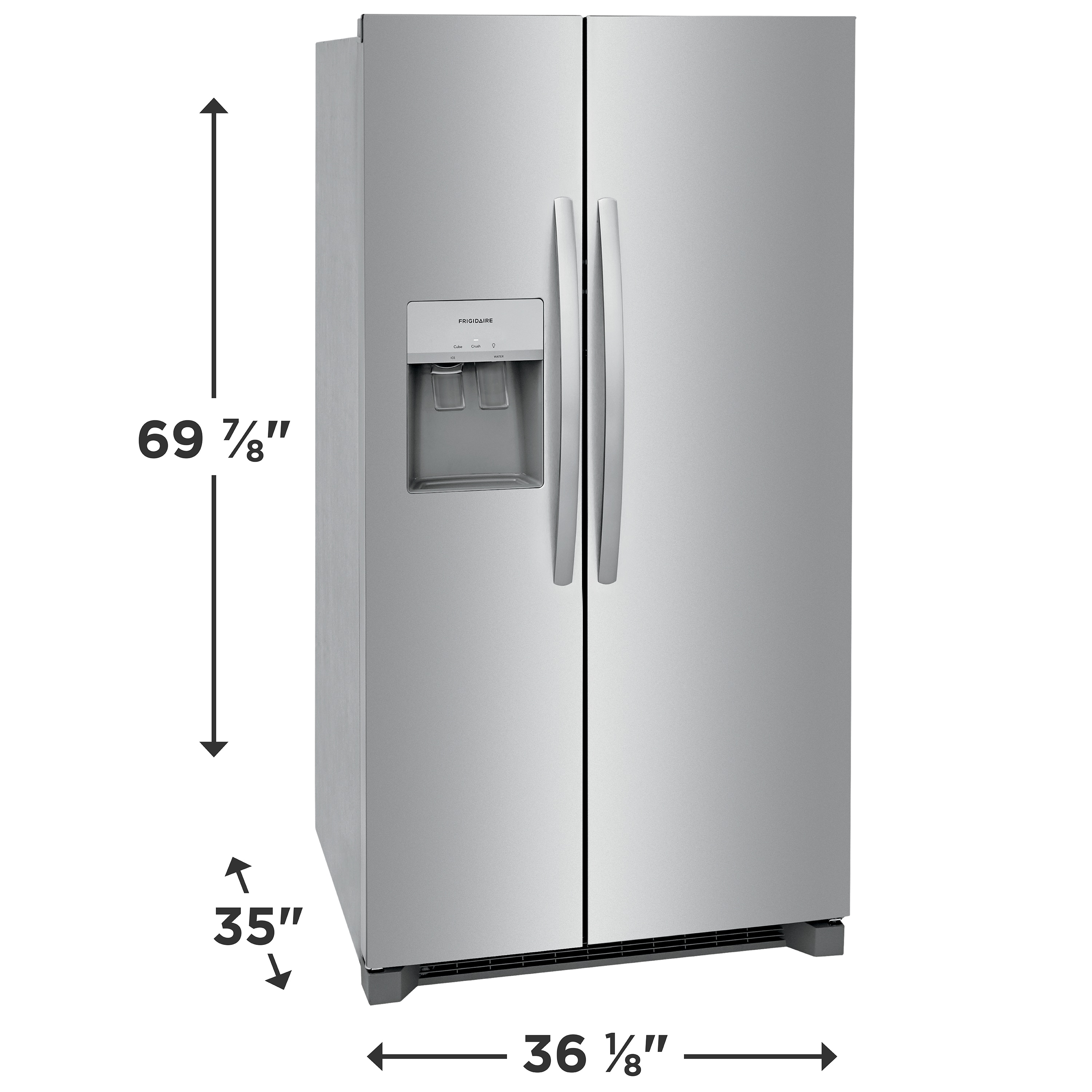 This Frigidaire 36-in side-by-side refrigerator offers our EvenTemp™ Cooling System which reacts quickly to temperature fluctuations and constantly circulates cold air throughout the fresh food and freezer compartments, ensuring a consistent cool from top to bottom. Keep fruits and vegetables fresh in our crispers that offer a seal to block out dry air. Enjoy the capacity to fit all of your family’s favorites and keep everything tidy with our flexible organization system that includes adjustable gallon door bins, removable glass shelves and two produce drawers. Awarded the Best Overall Side by Side Refrigerator of 2023 by Reviewed.com (USA Today).