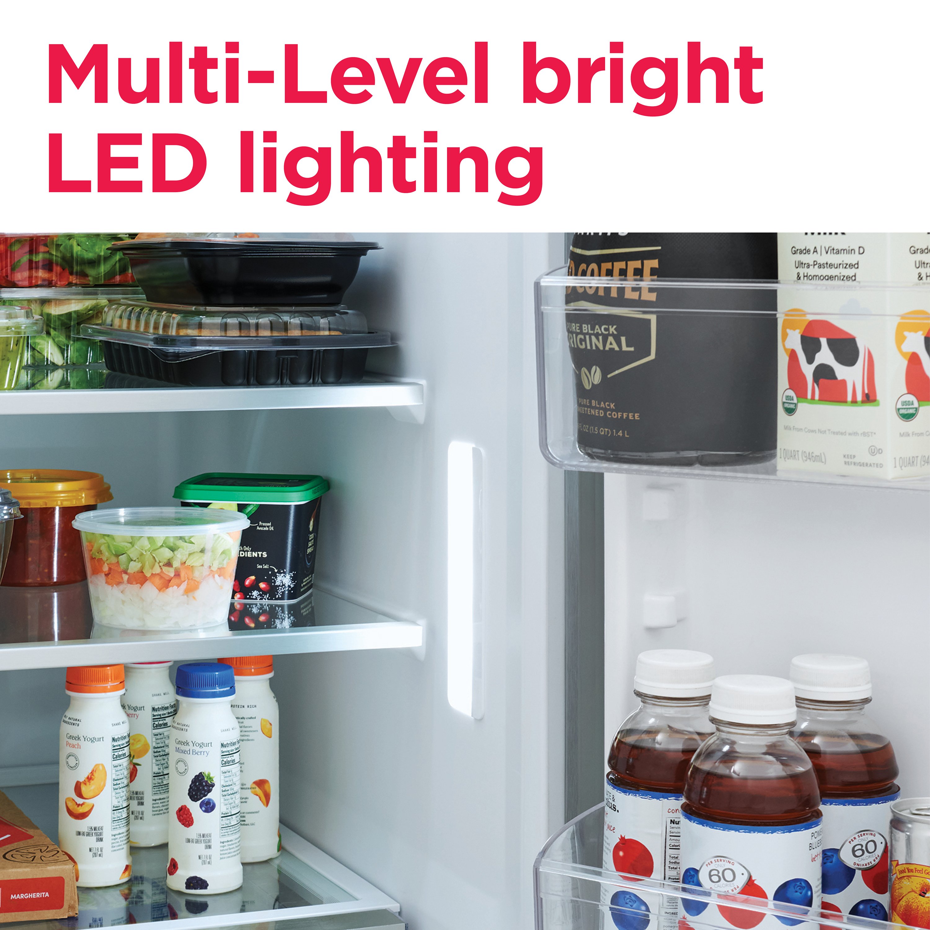 Find fresh foods quickly with our multi-level bright LED lighting