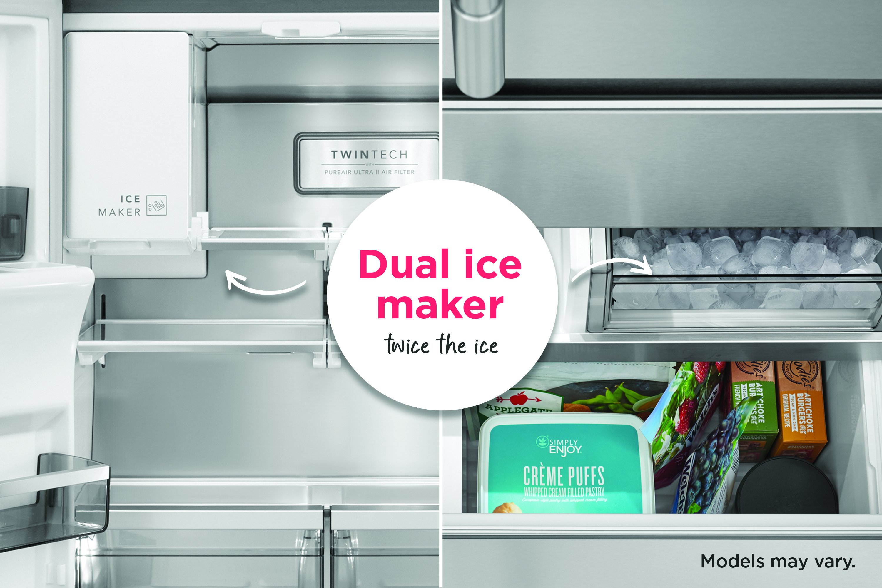 This Frigidaire Professional French door refrigerator offers a freshness system that maintains the taste and texture of even your most delicate foods. Our freshness system is packed with technologies that keep food fresh and reduce food waste, such as our cooling system, advanced crispers, and our genuine air and water filtration.