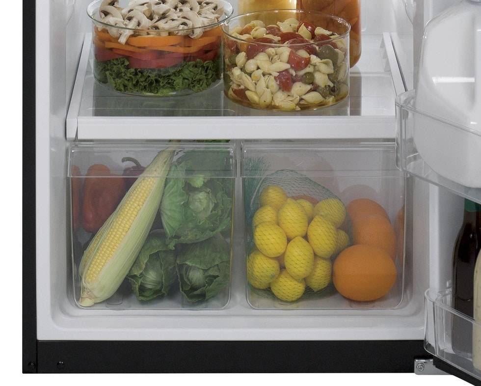 2 clear crisper drawers keep produce fresh and easily accessible