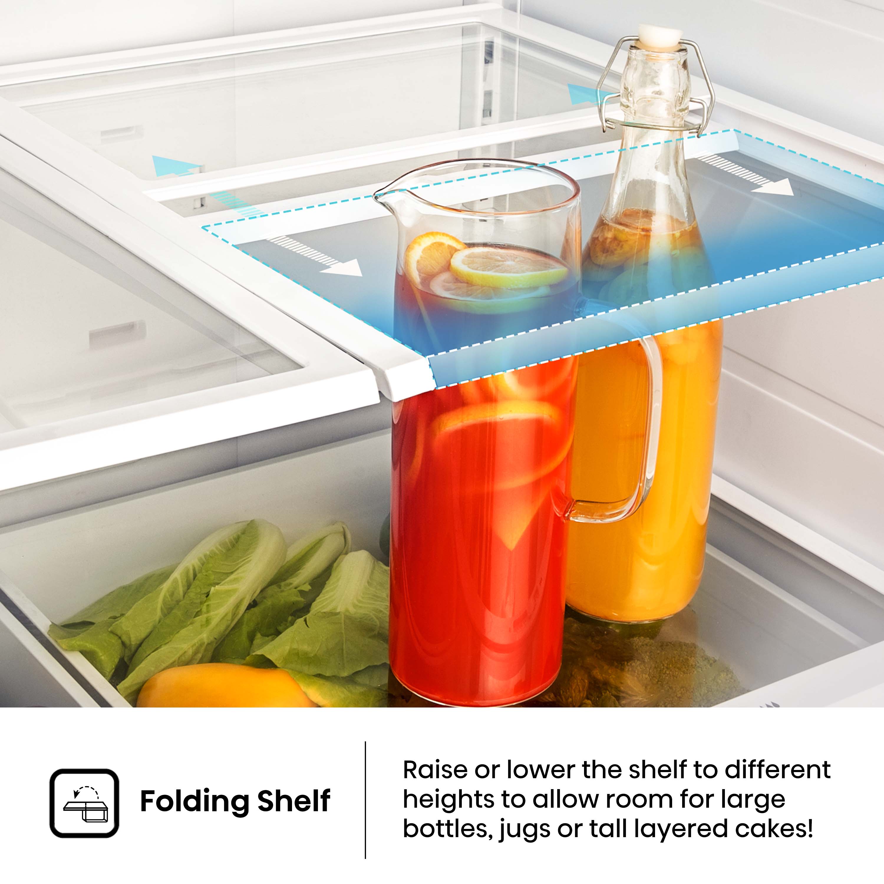 Sliding Shelf- Adjust the shelf to different height to allow room for taller items.