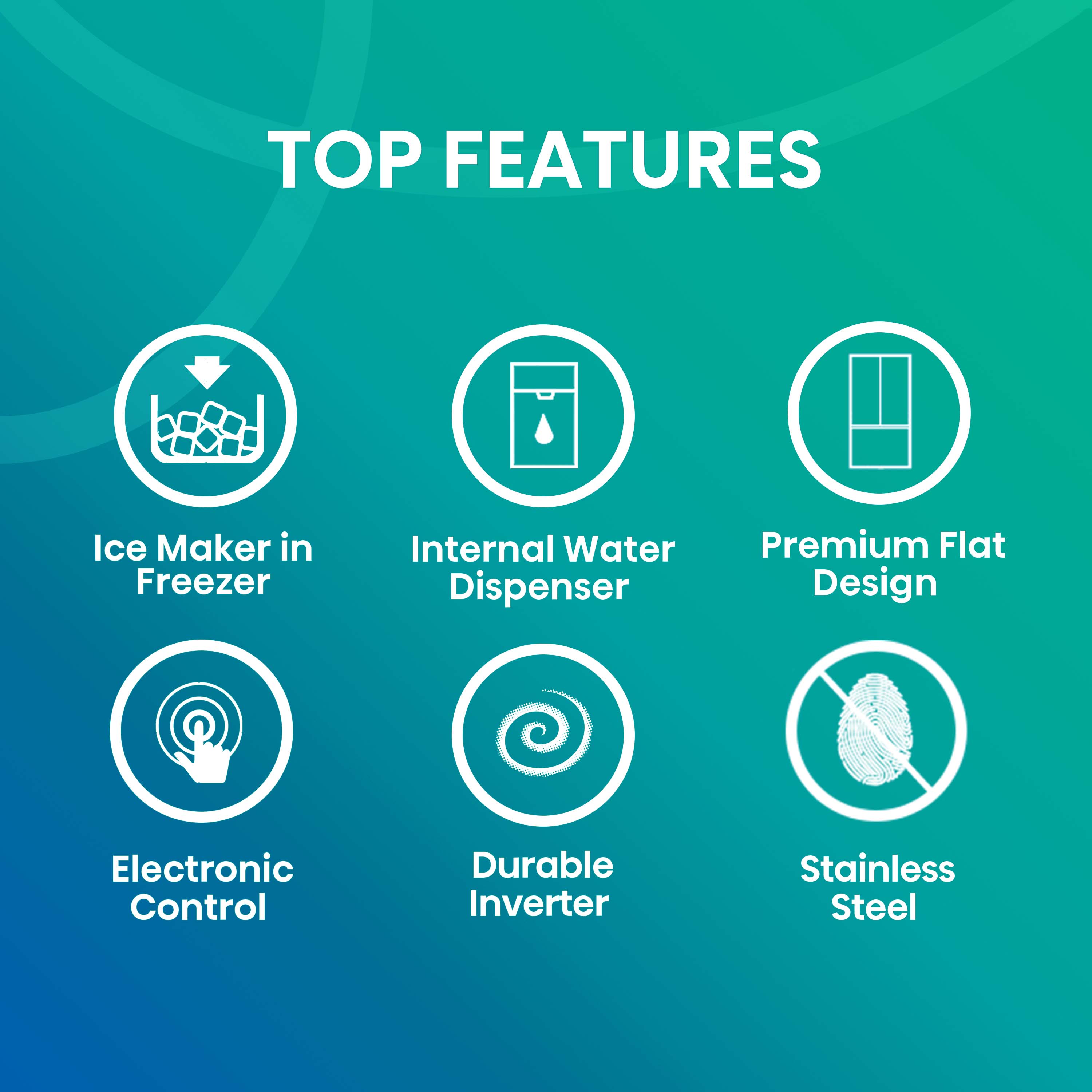 Anti-fingerprint stainless steel resists fingerprints and makes cleaning this refrigerator easy – no special cleaners required