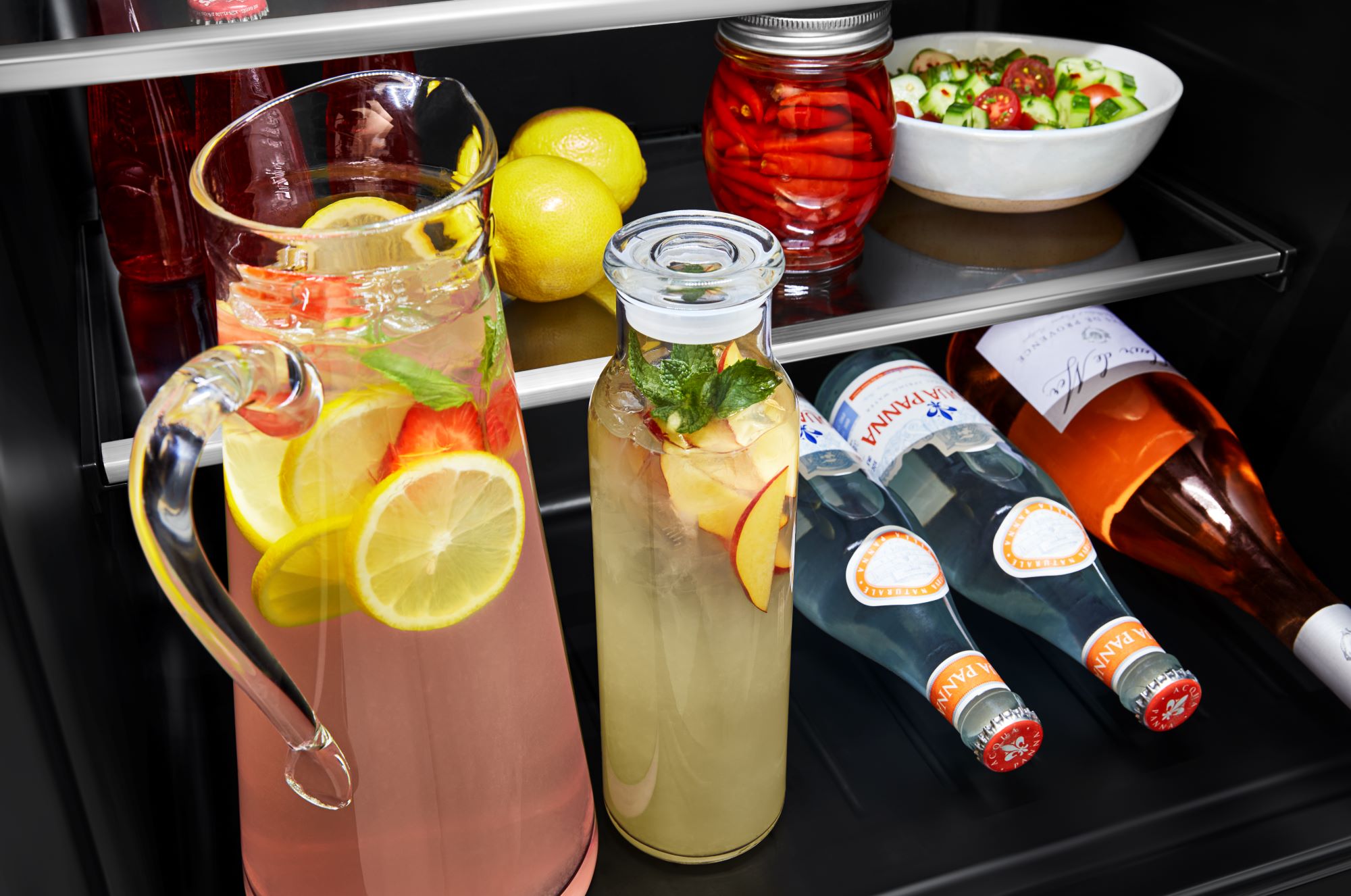 This Undercounter Refrigerator makes room for party essentials from platters to pitchers. Motion-Activated LED Lighting turns on inside as you approach, so you can see through the UV-Protected Thermal Glass Door to what’s inside, and a Temperature Monitoring System with sensor alert adds peace of mind. Fully Flush Installation with Hidden Hinges provides a built-in look within cabinetry.