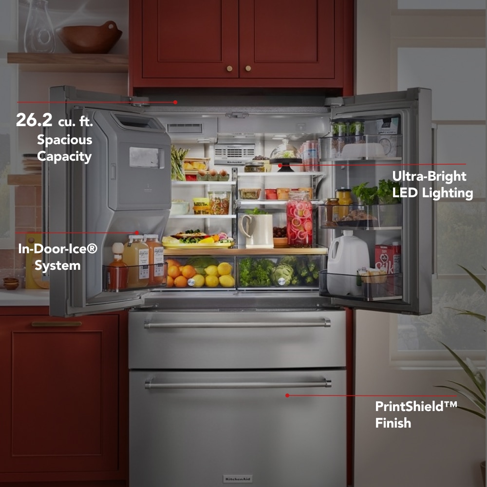 KitchenAid Standard-Depth 26.2-cu ft 4 -Door French Door Refrigerator with Ice Maker with Water and Ice Dispenser ( PrintShield Stainless )