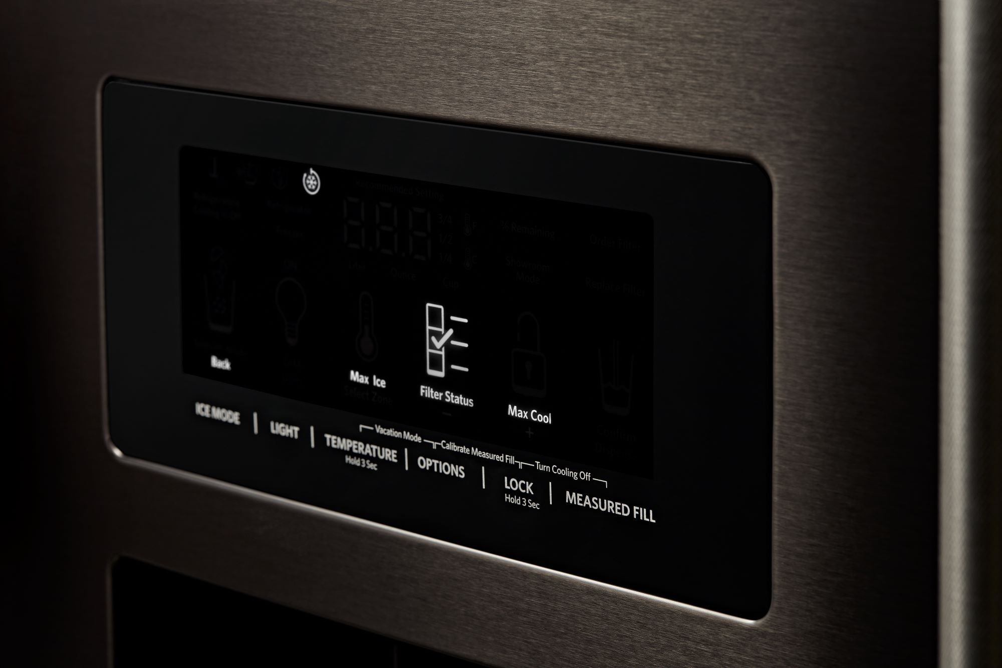 Exterior Ice and Water Dispenser for quick access while cooking