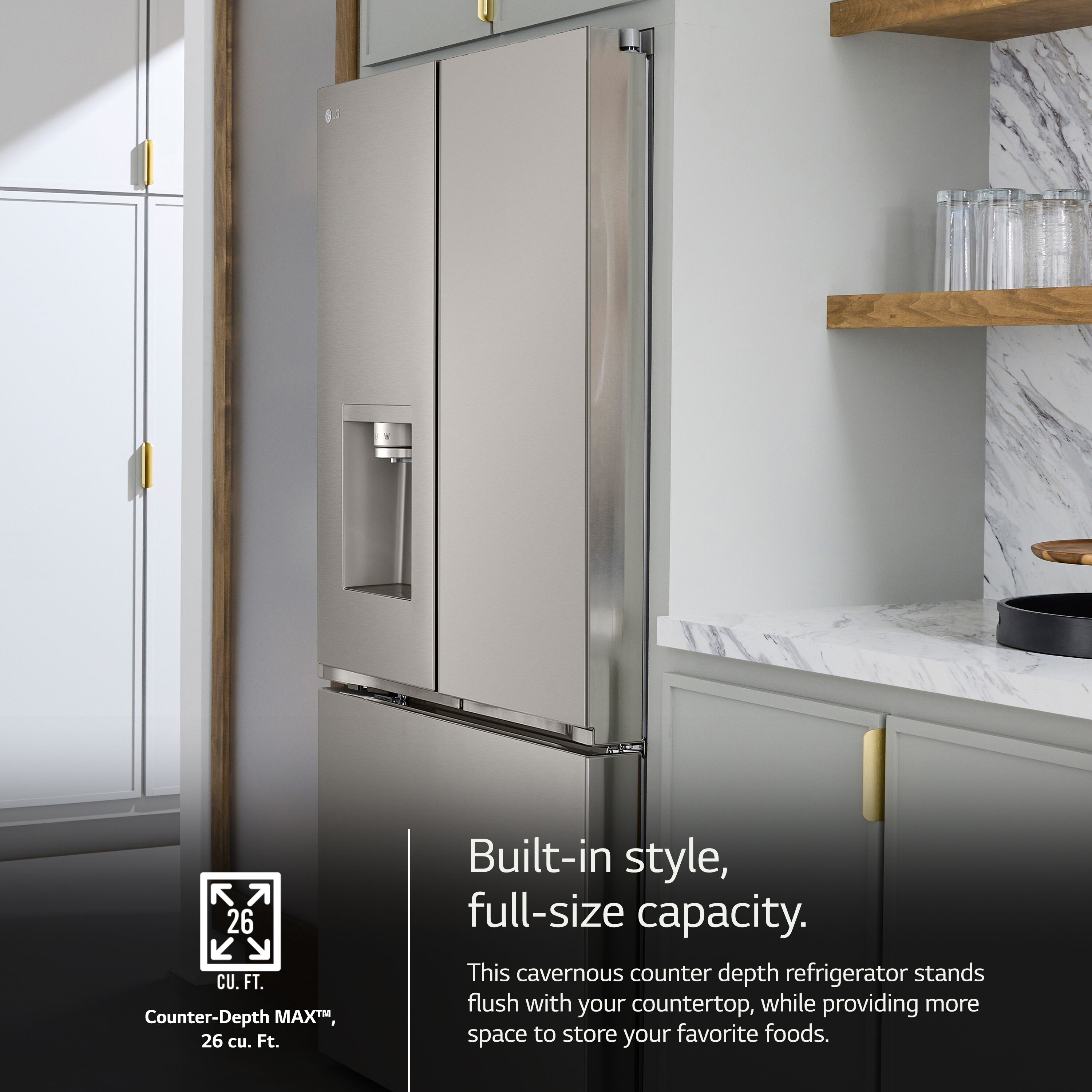 LG Counter-Depth MAX and 4 Types of Ice 25.5-cu ft 3 -Door Smart Compatible French Door Refrigerator with Dual Ice Maker with Water and Ice Dispenser ( PrintProof Stainless Steel ) ENERGY STAR Certified