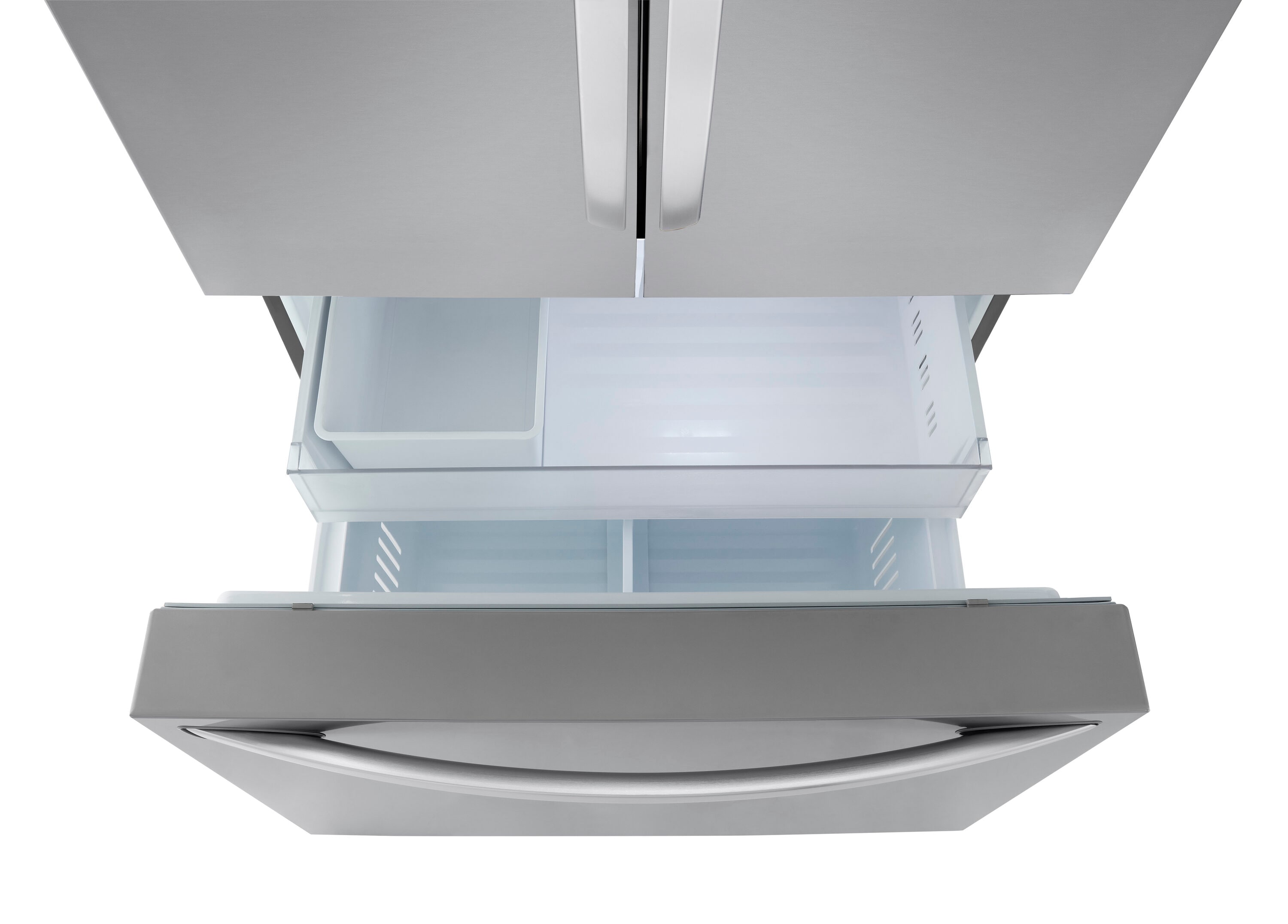 With some of the largest capacity in its class, at 32 cu. ft., this LG three-door Standard-Depth MAX refrigerator has a sleek look and offers enough room to store all your family’s favorite foods. LG offers the capacity you typically get in a standard-depth refrigerator packaged in a sleek design so you don’t need to compromise your style. The convenient internal dispenser offers easy access to filtered water while providing sleek, minimalist doors with no visible dispenser.