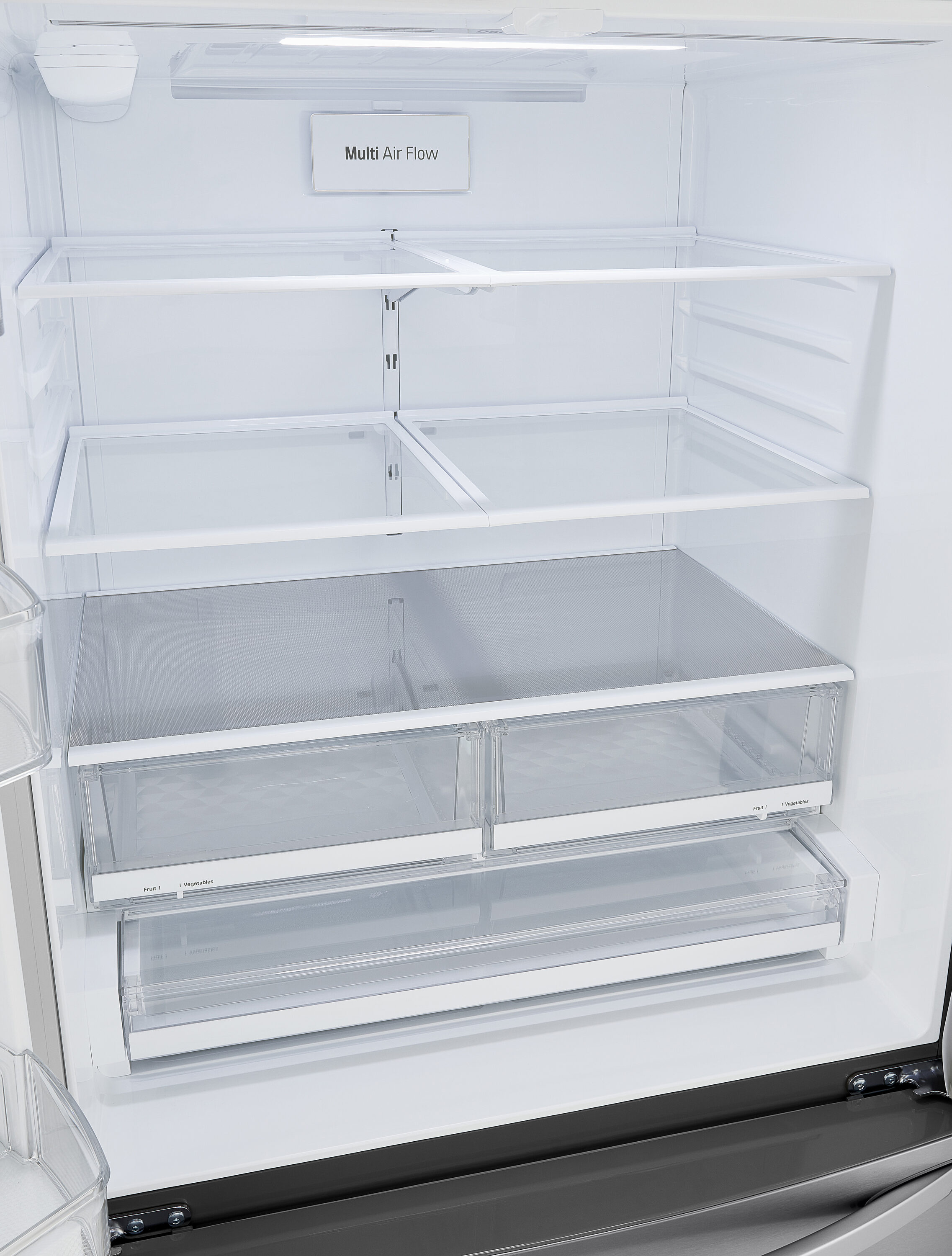 More space. Less fuss. This is the refrigerator you dreamed of with the feature set that matters. Open the wide French Doors to reveal a spacious 28.7 cu. ft. of storage – now more useful space than ever. Without a bulky ice maker looming on the top shelf, you can truly store more. But there’s more to love, you also get LG’s lifestyle innovations like the PrintProof® easy-care finish and Door Cooling+ technology, which provides blasts of cool air to the refrigerator.