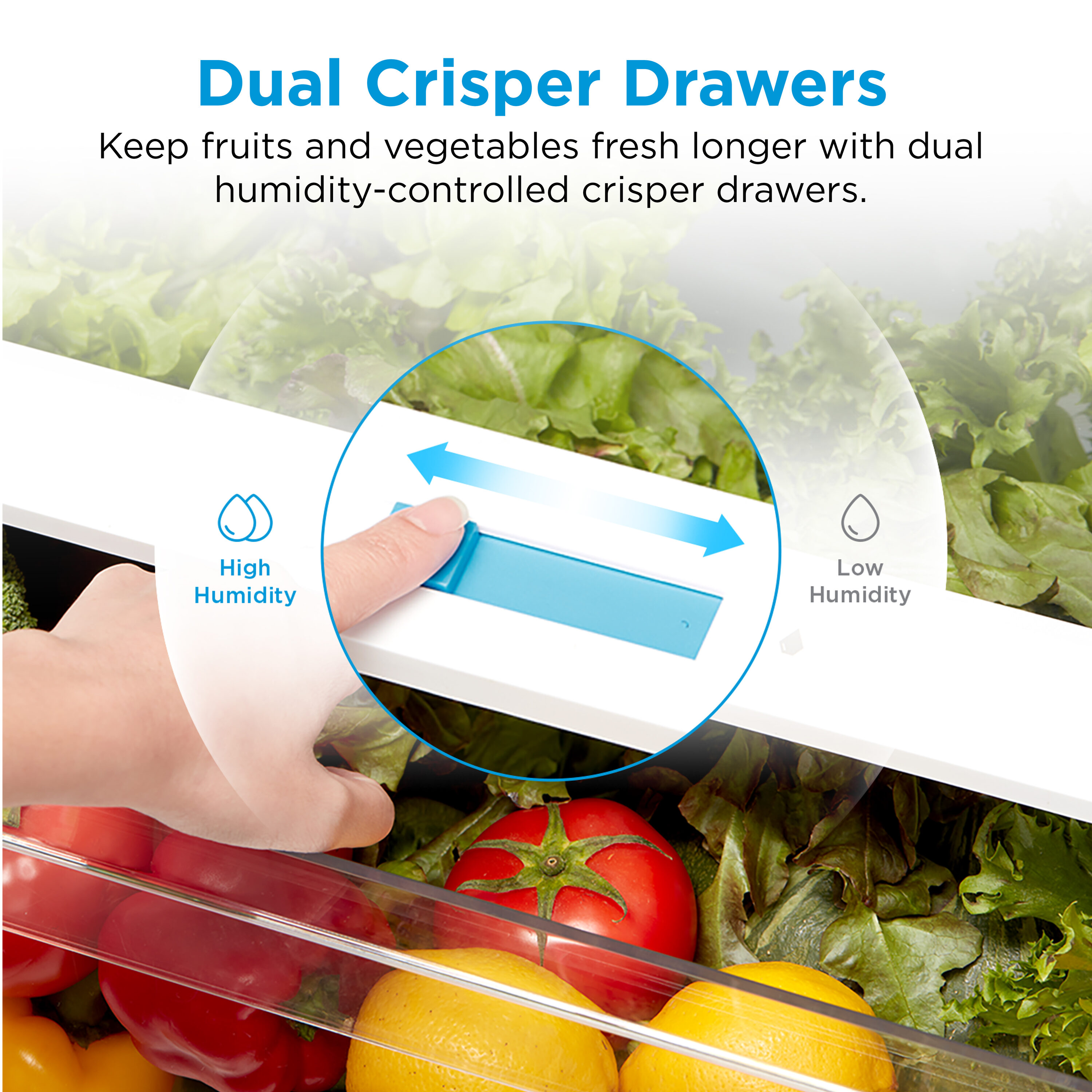 Multi-Flow Cooling: Strategically placed vents evenly distribute cool air throughout the refrigerator, ensuring that ideal temperatures are maintained in every interior space.