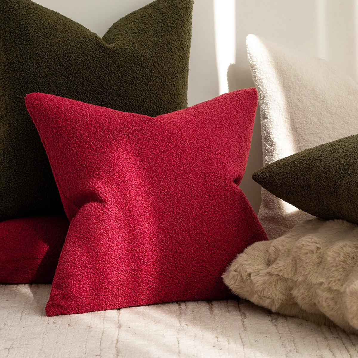 - COZY MATERIAL: This pillow cover is made of durable curly faux fur fabric; Soft, fluffy and so cozy, the faux fur pillow cover provide an extra cozy and casual feel to your living room.