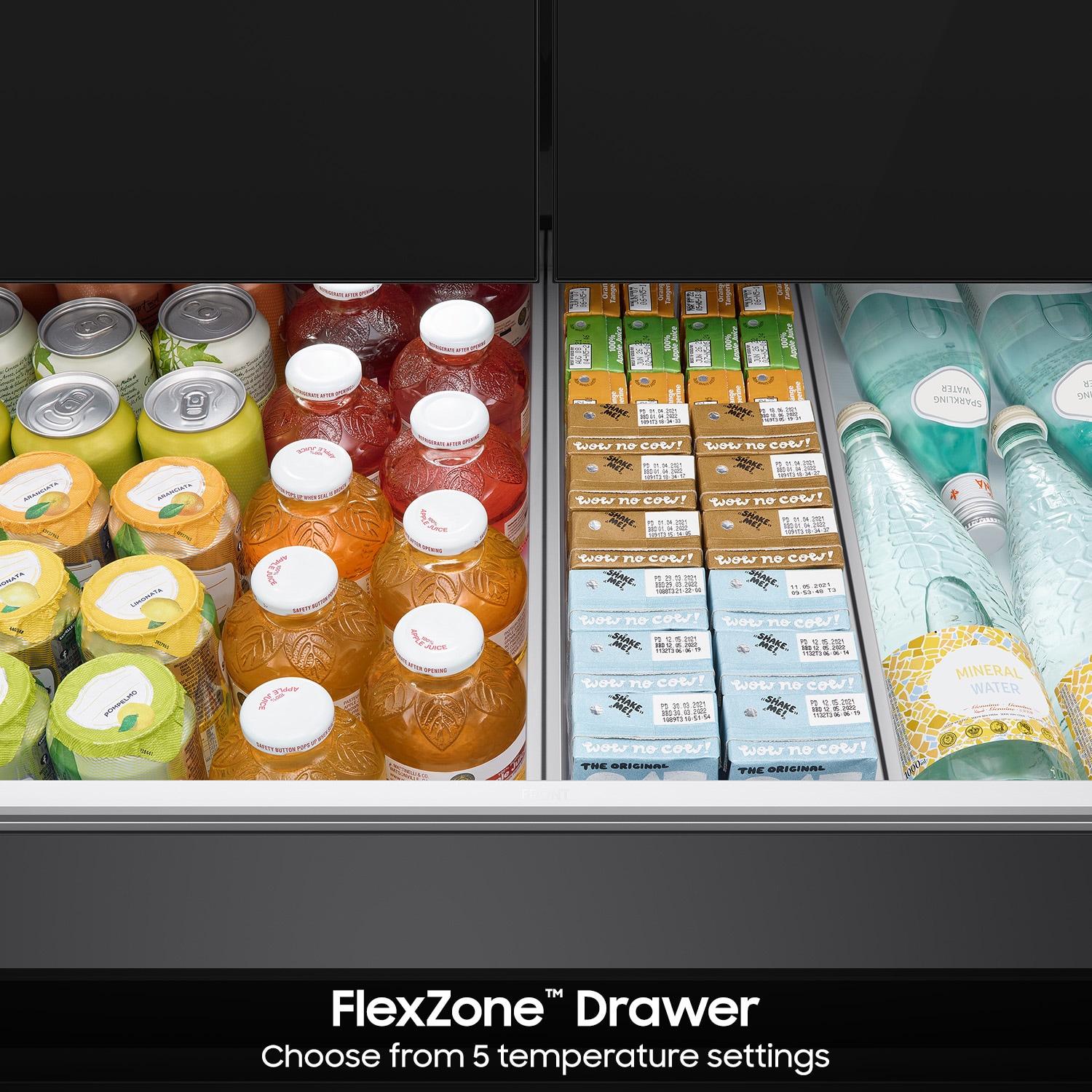 FlexZone Drawer: The FlexZone Drawer is customizable with 5 different temperature settings; From refrigerator to soft freeze, this middle drawer can store everything from fruit and vegetables to your favorite meat and seafood