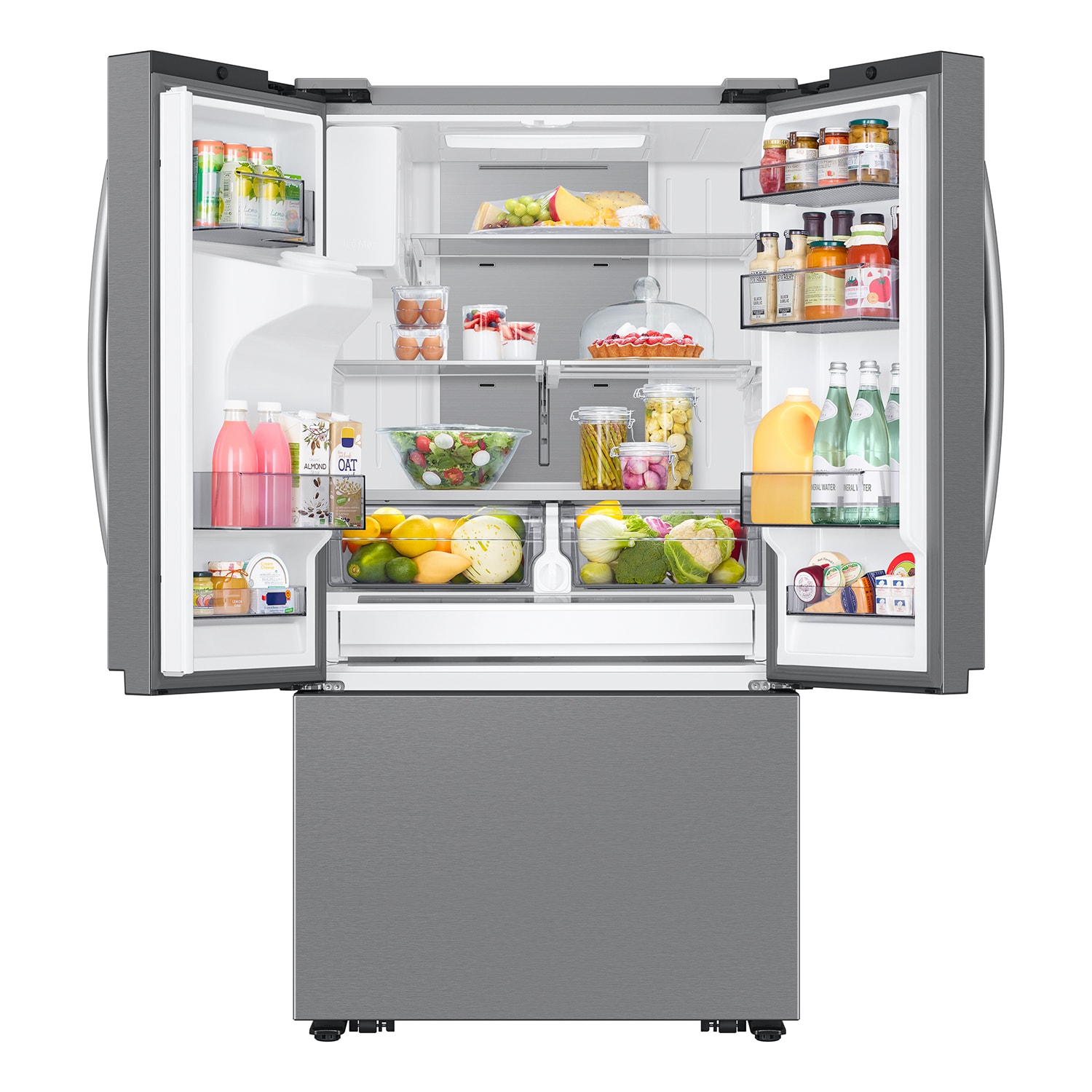 Samsung Counter-Depth Mega Capacity 25.5-cu ft 3 -Door Smart Compatible French Door Refrigerator Triple with Water and Ice Dispenser ( Fingerprint Resistant Stainless Steel ) ENERGY STAR Certified