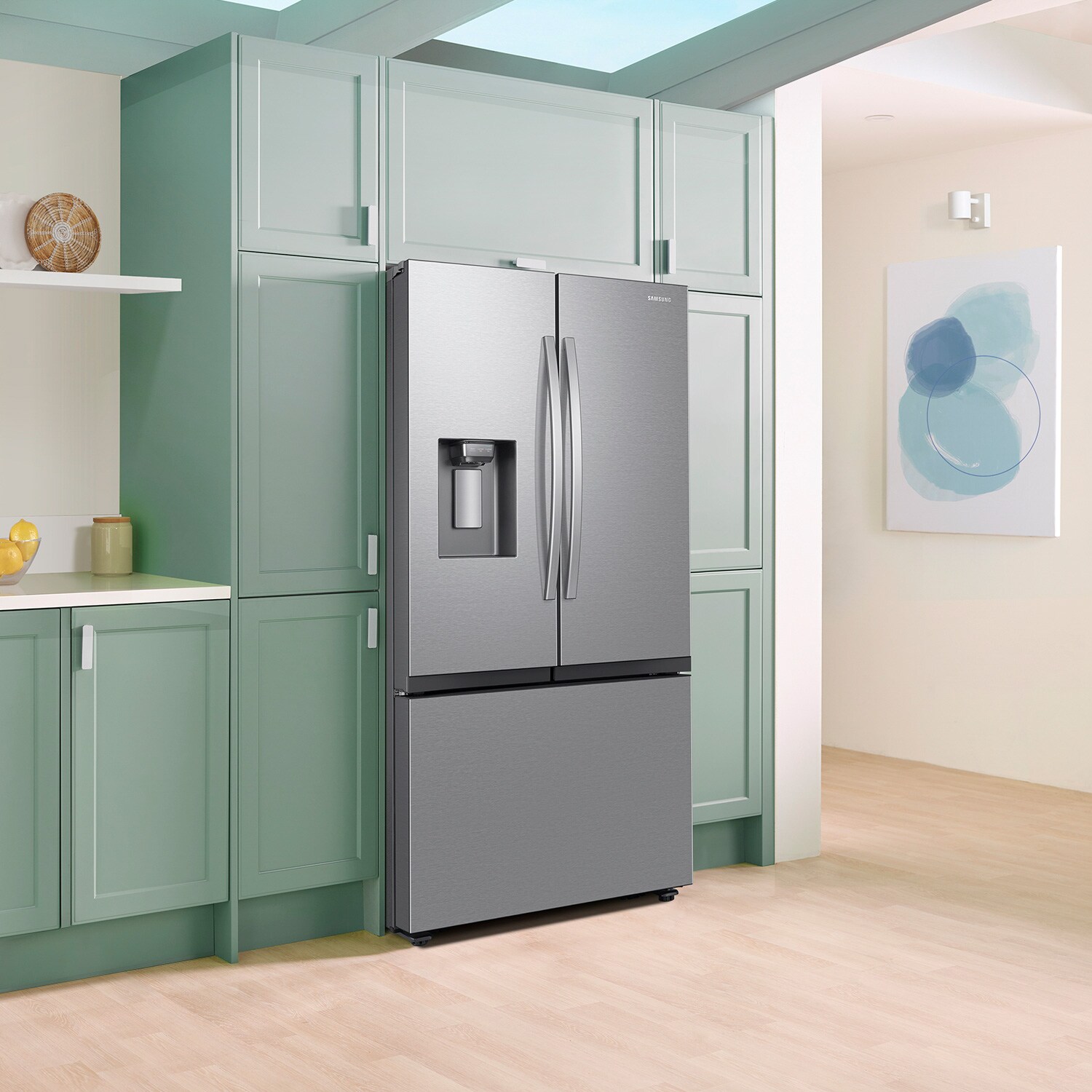 Samsung Standard-Depth Mega Capacity 30.5-cu ft 3 -Door Smart Compatible French Door Refrigerator Triple with Water and Ice Dispenser ( Fingerprint Resistant Stainless Steel ) ENERGY STAR Certified