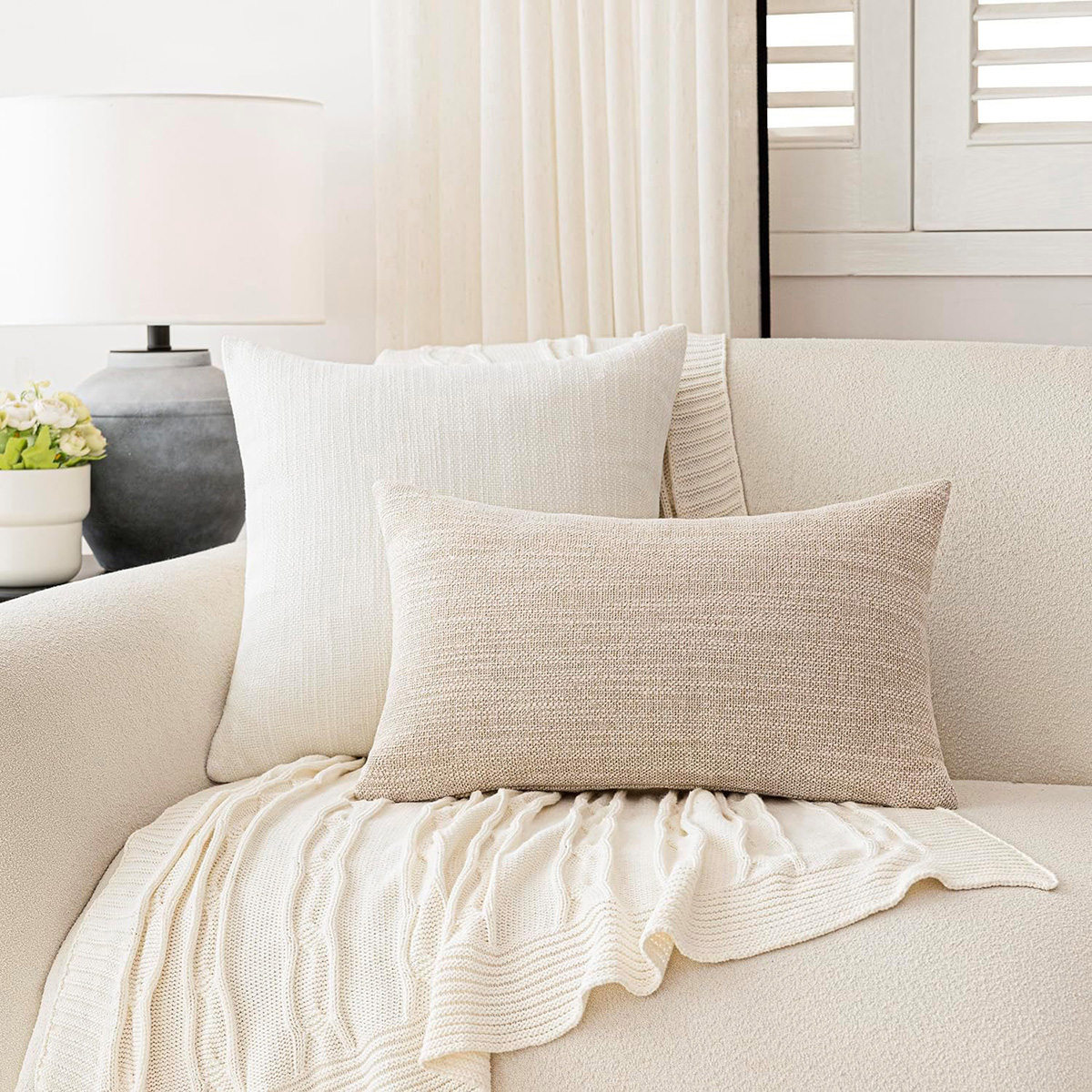 - 【Faux Linen Material】This solid pillow cover is made from high-quality faux linen, breathable, skin friendly, thick fabric and more durable. The pillow covers own the unique look, it have 2 Tones Weave, adding vintage and farmhouse feeling to your room.