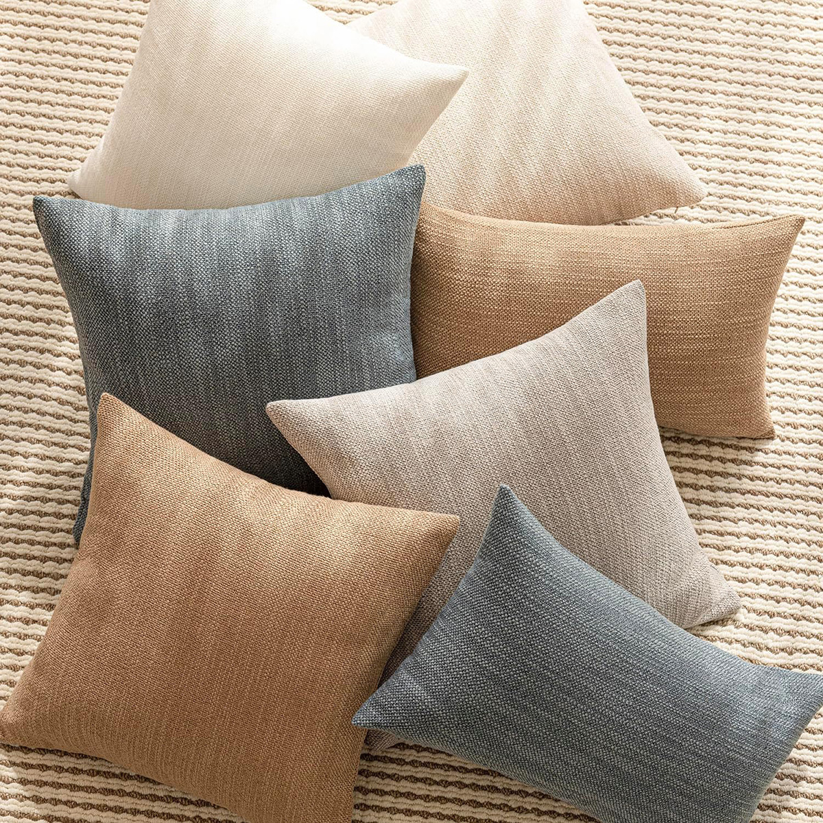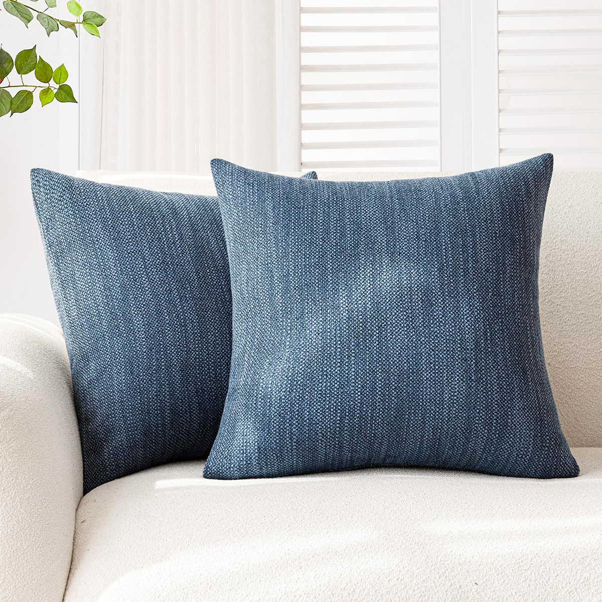 Set of 2 Decorative Textured Burlap Linen Throw Pillow Covers Farmhouse Boho Lumbar Cushion Cover Solid Accent Pillowcase,Blue Gray