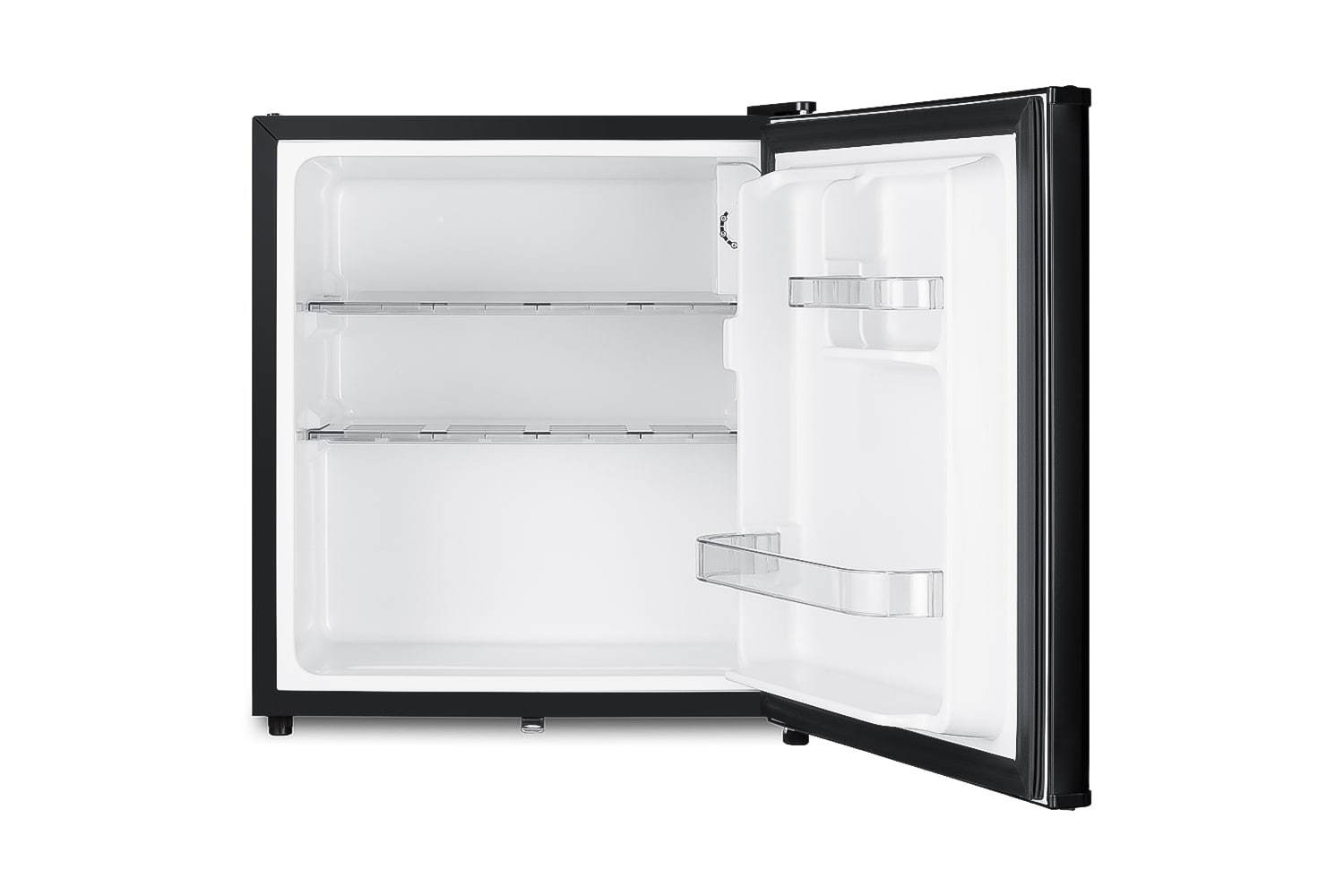 Two adjustable shelves with flat bottoms to keep bottles and other items reliably stored