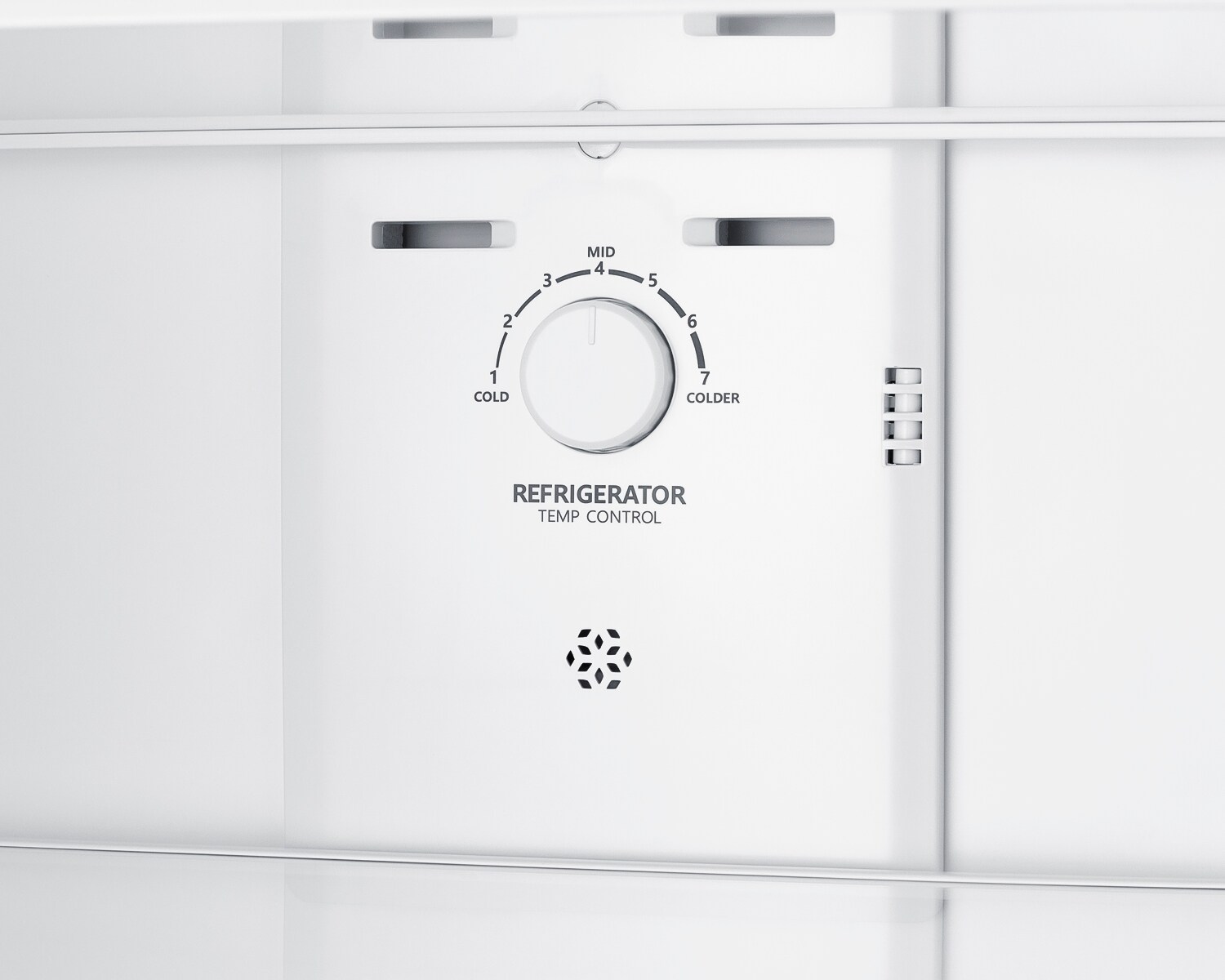 Multiple door shelves in both the refrigerator and freezer compartments offer convenient storage for condiments and bottles