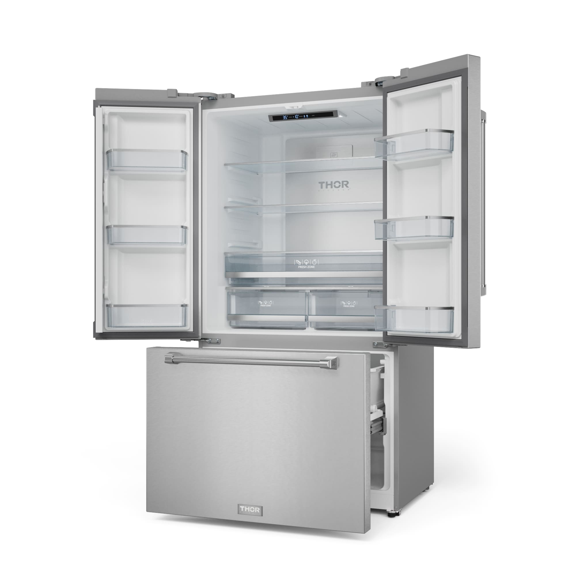 Experience superior freshness with the Gordon Ramsay Series by Thor Kitchen 36 Inch French Door Counter Depth Refrigerator with advanced cooling technology, spacious interiors, and customizable features, this refrigerator ensures your ingredients stay at peak freshness. Designed for durability and efficiency, it brings top-tier performance and style to your kitchen.