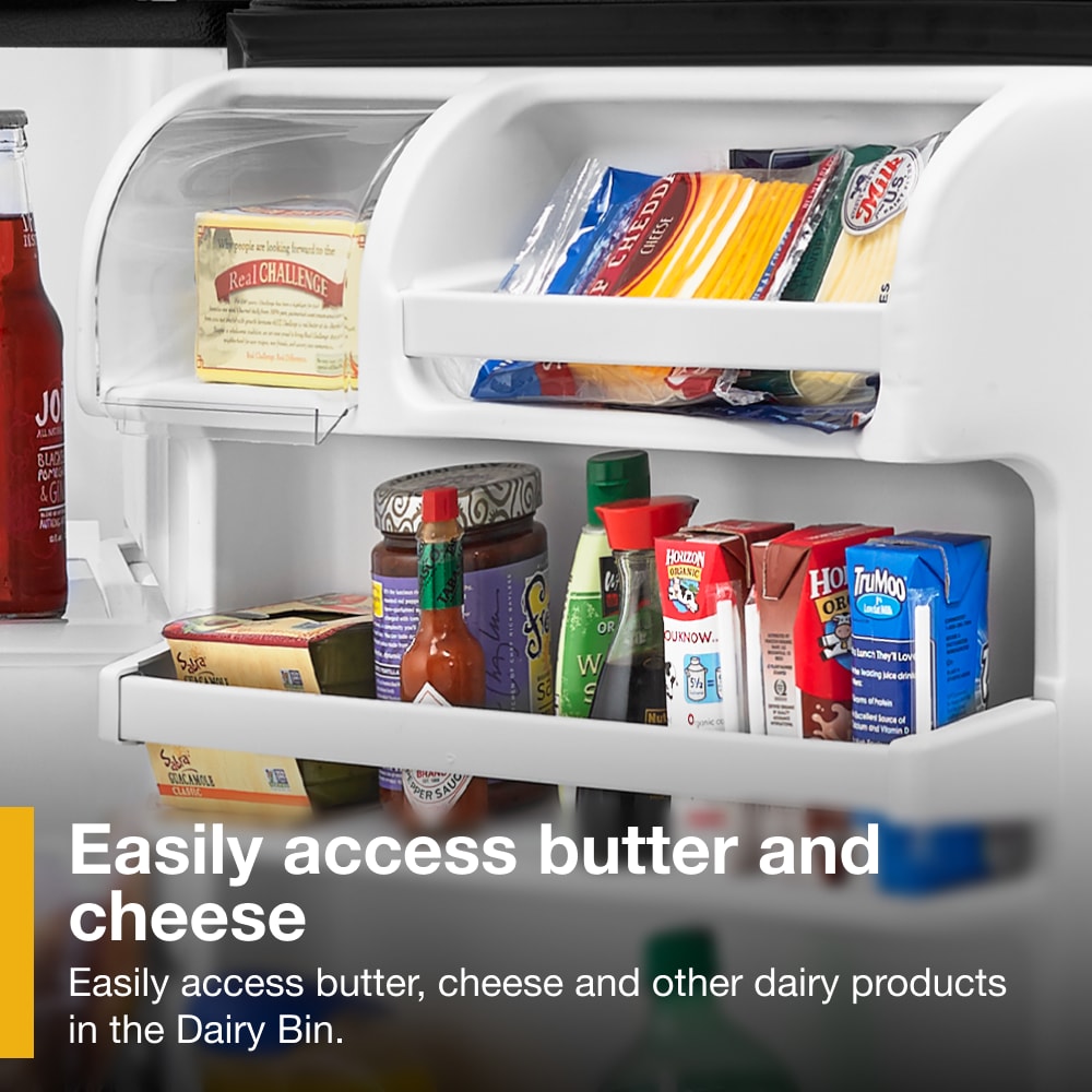 Easily access butter, cheese and other dairy products from the Dairy Bin