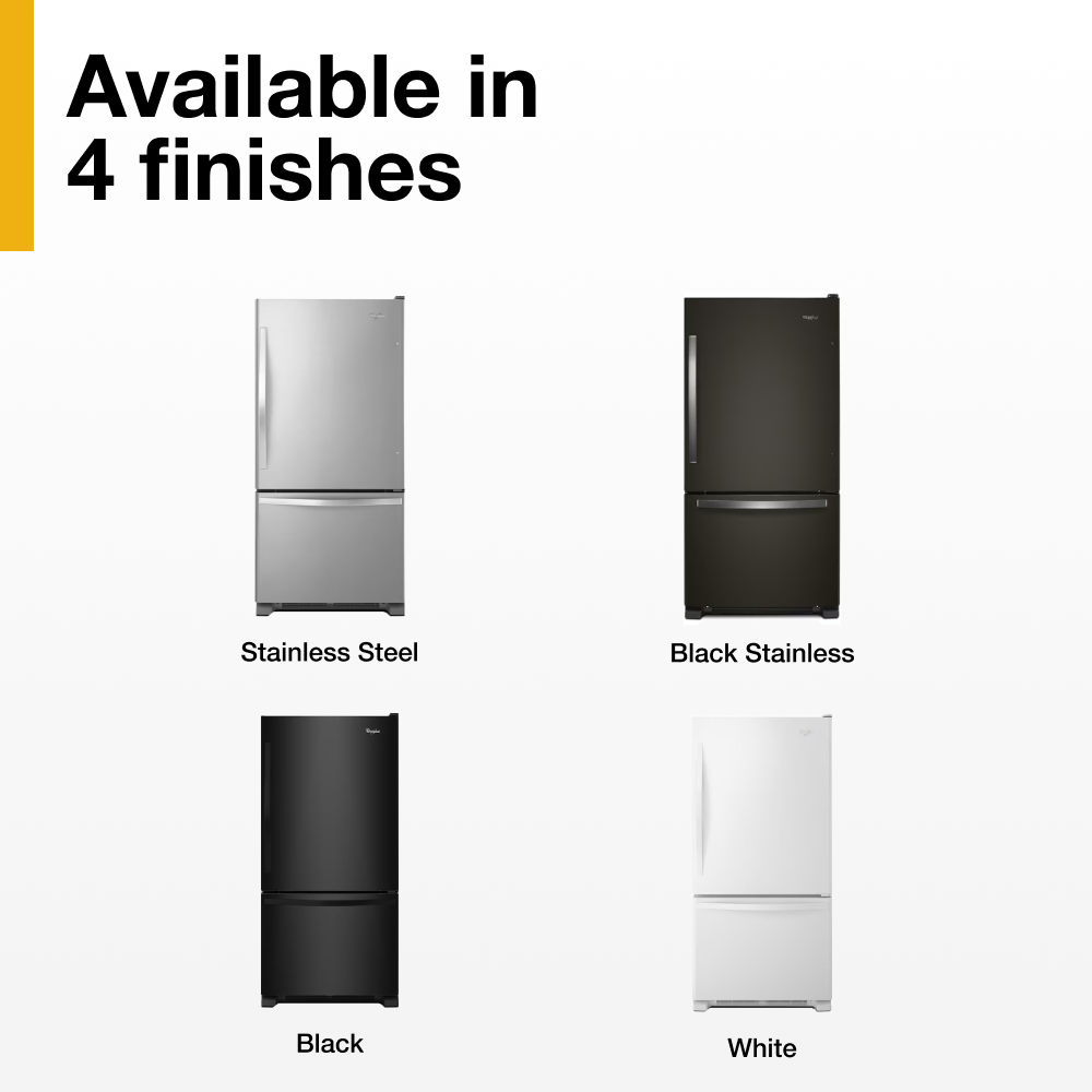 Conveniently store your family’s essentials. This Whirlpool® Bottom-Freezer Refrigerator has a 22 cu. ft. capacity and a freezer drawer that keeps frozen items in close reach. Features include a FreshFlow™ Produce Preserver that keeps fruits and vegetables in the ideal environment, an Accu-Chill™ Temperature Management System that cools items quickly and a Factory-Installed Icemaker. This model is ENERGY-STAR® certified.
