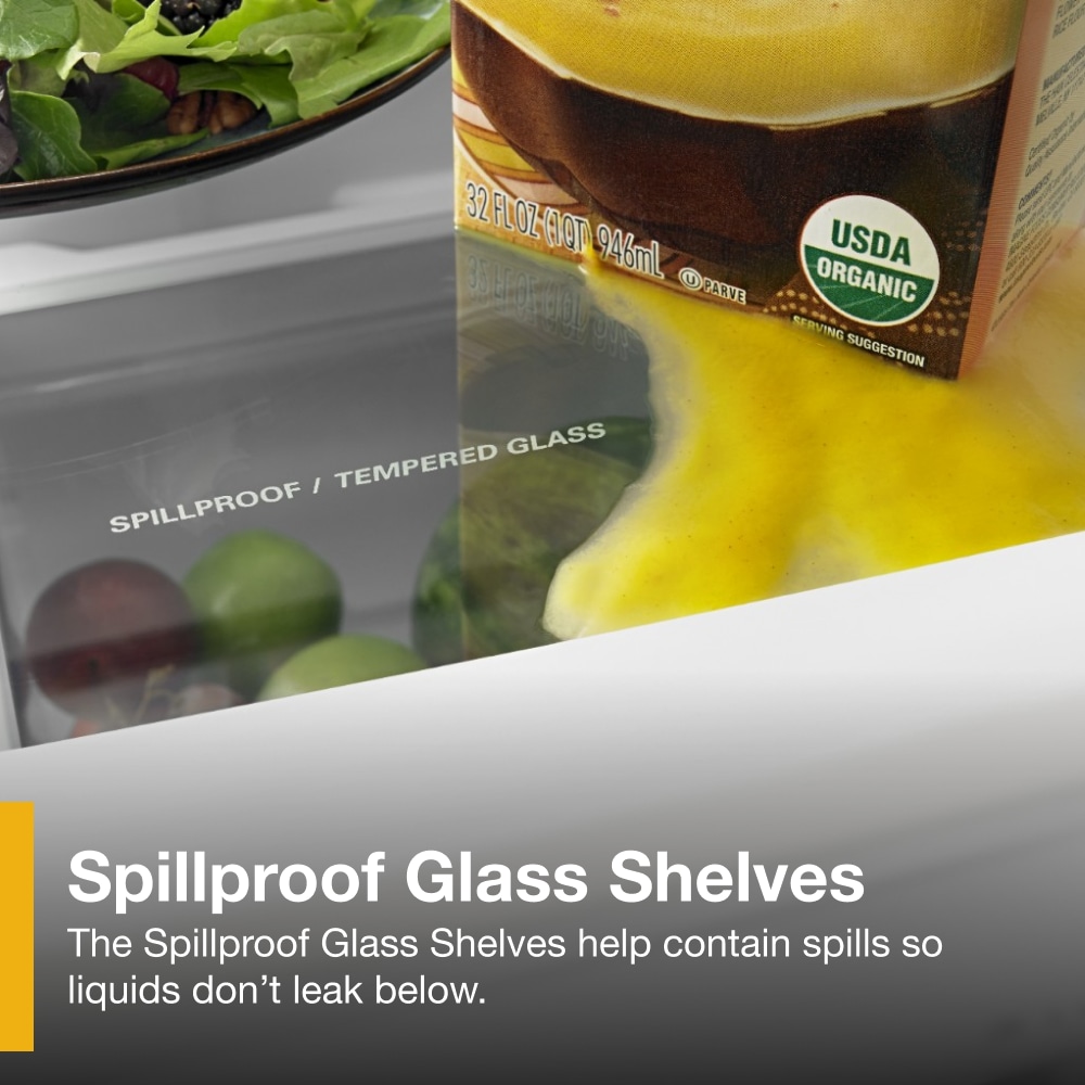Spillproof Glass Shelves help contain spills and prevent liquids from leaking below