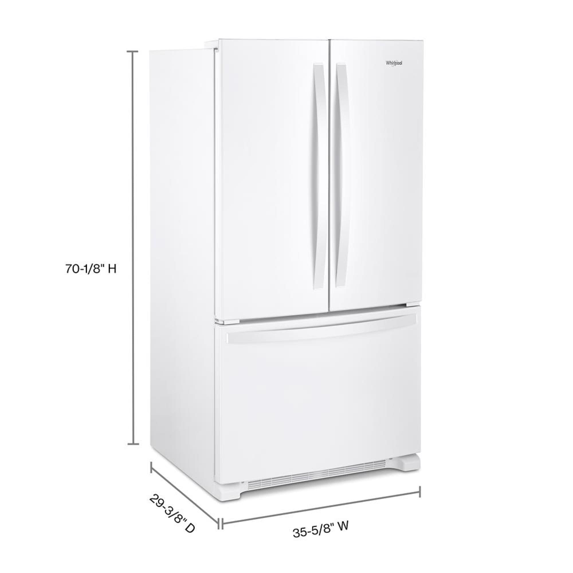 This French Door refrigerator with an internal water dispenser gives you the storage you need with the flexibility you want. With features like an Elevated Deli Drawer, spend less time looking and more time enjoying your deli essentials. The Interior Water Dispenser with Whirlpool® Water Filtration offers on-demand filtration so even clean water is easy to find. Get more capacity than counter depth models thanks to its Full Depth Design.
