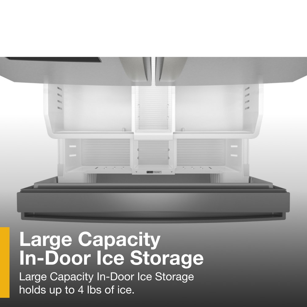 Large capacity In-Door Ice Storage holds up to 4 lbs of ice