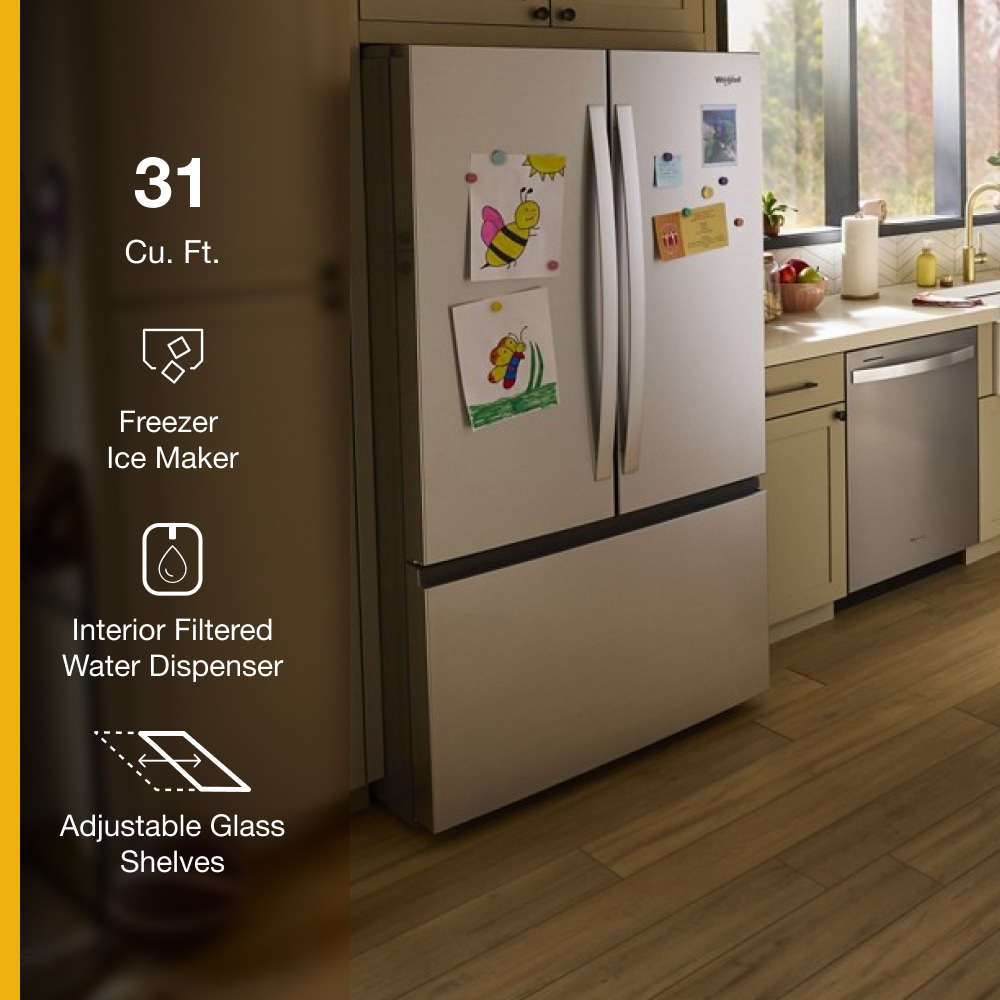 Whirlpool Standard-Depth 30.52-cu ft 3 -Door French Door Refrigerator with Ice Maker with Water Dispenser ( Fingerprint Resistant Stainless Finish ) ENERGY STAR Certified