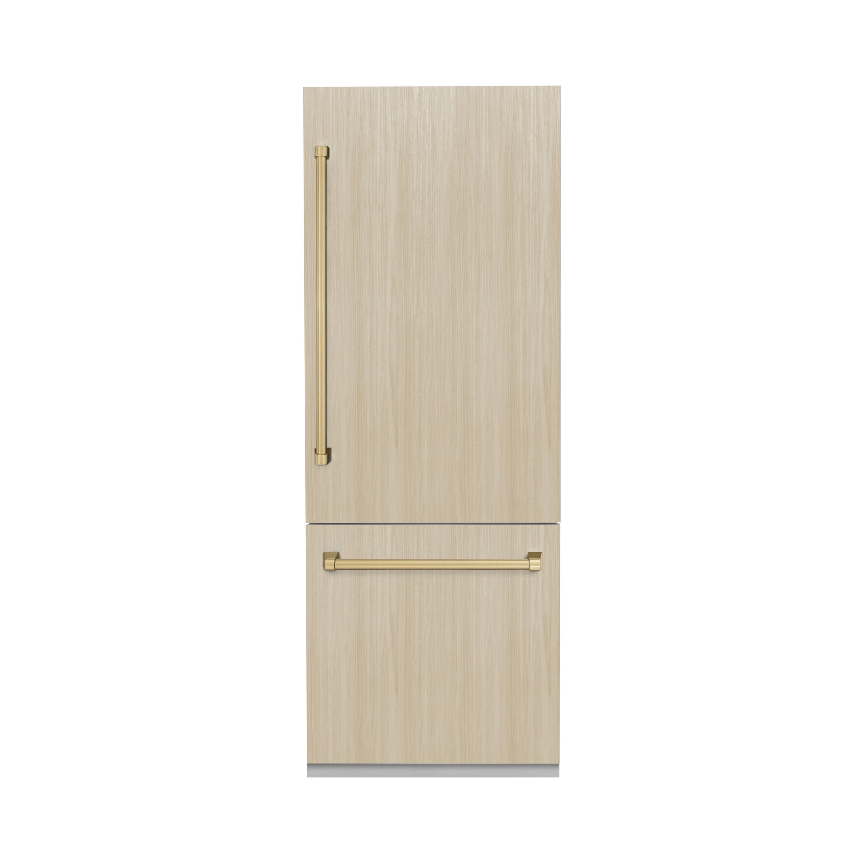 Luxury isn’t meant to be desired – it’s meant to be attainable. The ZLINE Autograph Edition 30 in. 16.1 cu. ft. Panel Ready Built-In Bottom Freezer Refrigerator with Water Dispenser and Ice Maker with Champagne Bronze Accents (RBIVZ-30-CB) provides the ultimate upgrade to the center of your home by pairing premium dual cooling technology with enhanced storage capacity for multiple grocery items. Achieve ZLINE Attainable Luxury® excellence with innovative features designed to enhance your kitchen’s cooling and freezing capability.