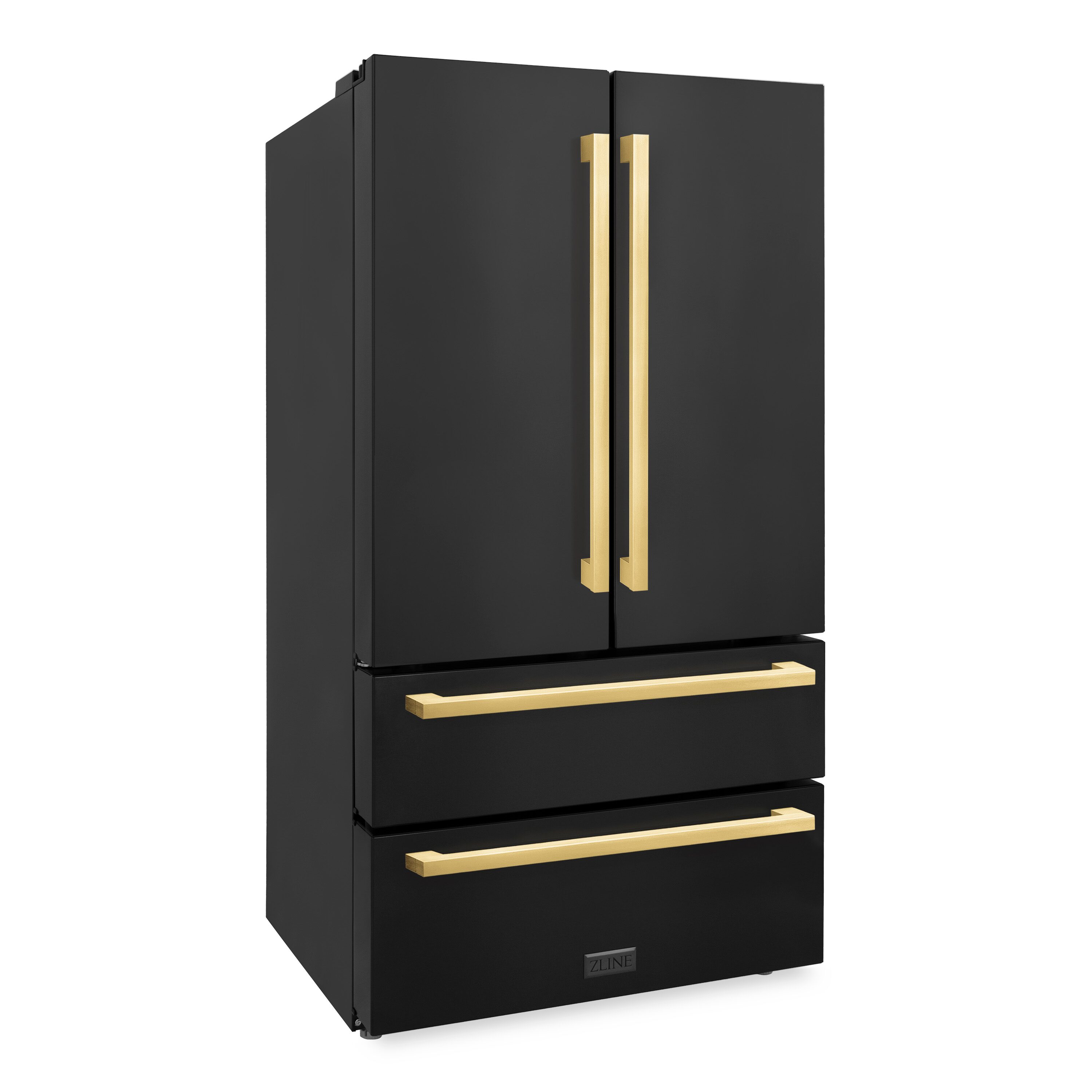 ZLINE KITCHEN & BATH Counter-Depth 21.6-cu ft 4 -Door French Door Refrigerator with Ice Maker with Water and Ice Dispenser ( Black Stainless Steel with Flat Polished Gold Handle ) ENERGY STAR Certified