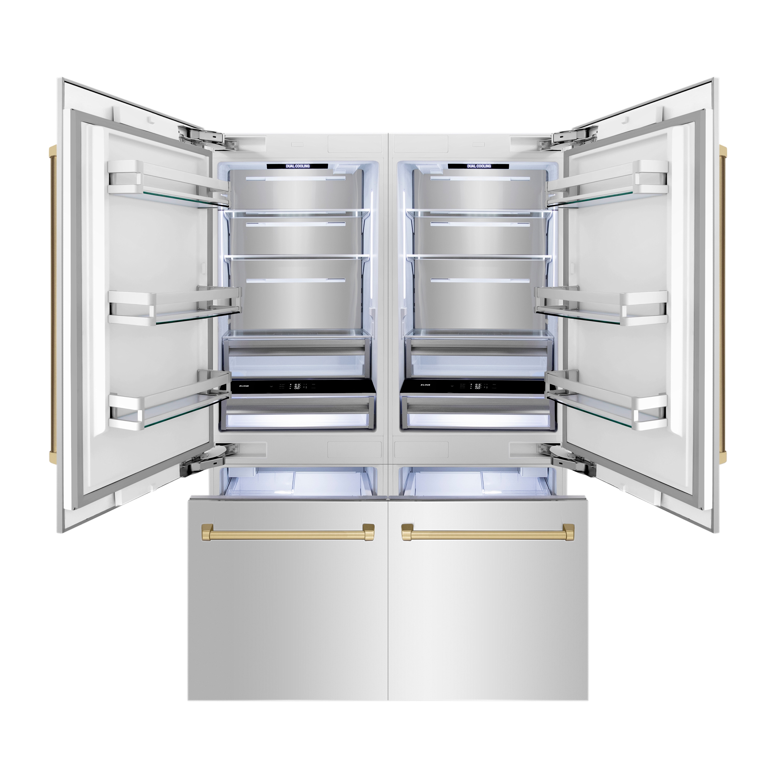 Luxury isn’t meant to be desired – it’s meant to be attainable. The ZLINE Autograph Edition 60 in. 32.2 cu. ft. French Door Built-In Bottom Freezer Refrigerator with Water Dispenser and Ice Maker in Stainless Steel with Champagne Bronze Accents (RBIVZ-304-60-CB) provides the ultimate upgrade to the center of your home by pairing premium dual cooling technology with enhanced storage capacity for multiple grocery items. Achieve ZLINE Attainable Luxury® excellence with innovative features designed to enhance your kitchen’s cooling and freezing capability.