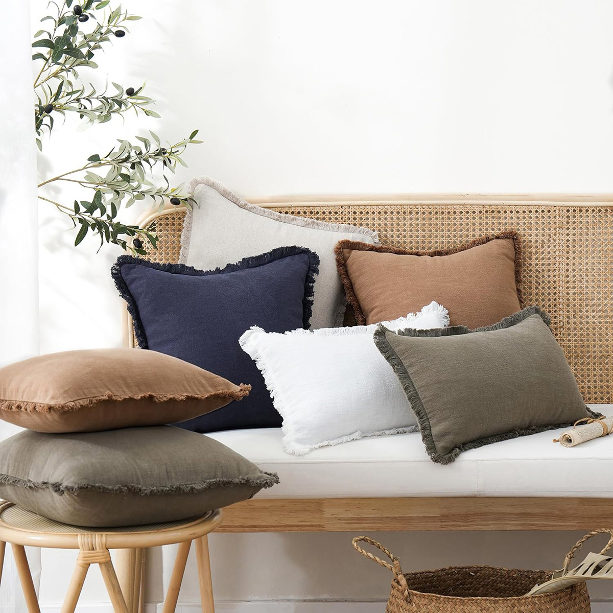 - 【Natural Linen Fabric】Our pillow cover is crafted of 80% natural ramie linen and 20% cotton. Natural linen fabric makes it soft, comfortable, breathable and durable for all season use. Treated with Stone Washed process, the pillow’s creates subtle dimension, and a relaxed feel.