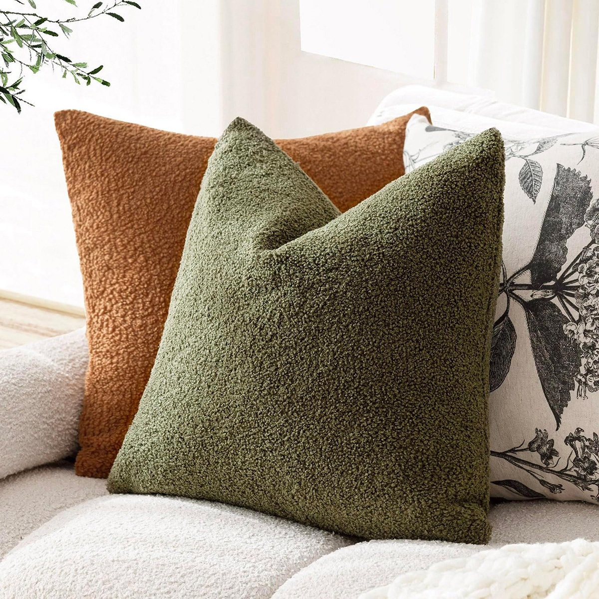 Pack of 2, Curly Faux Fur Decorative Throw Pillow Covers Soft Plush Cushion Case with Zipper Cozy Fluffy Boho Pillowcase, Moss Green