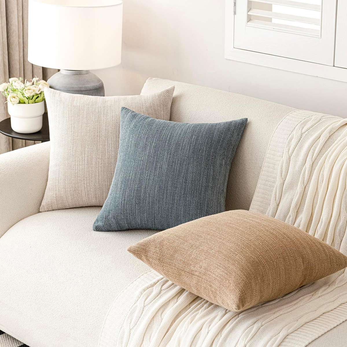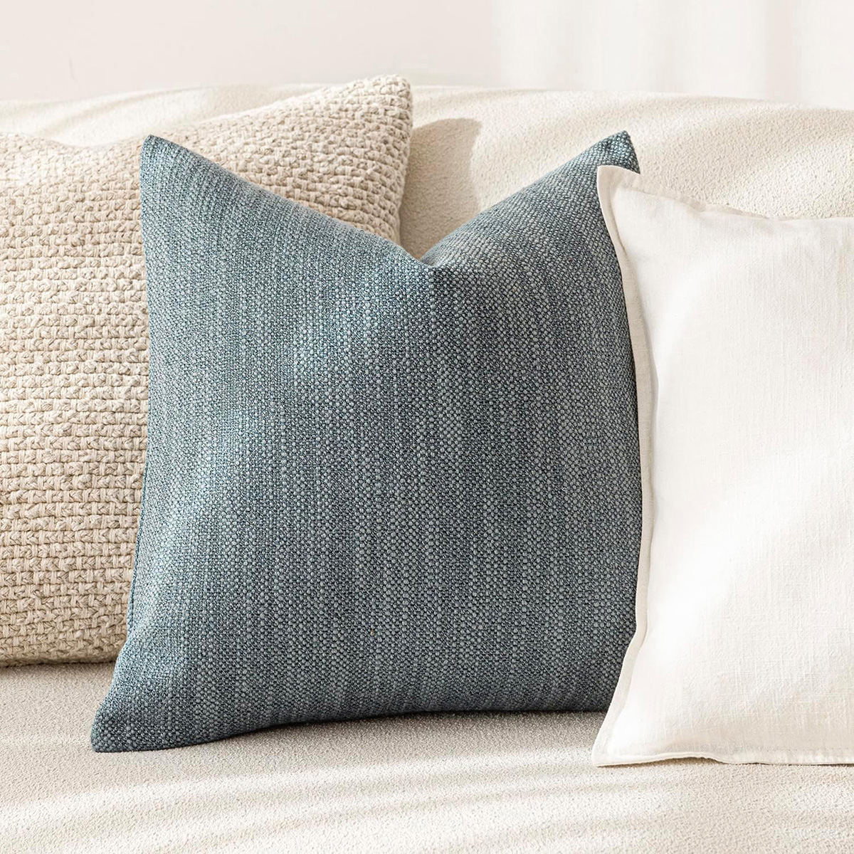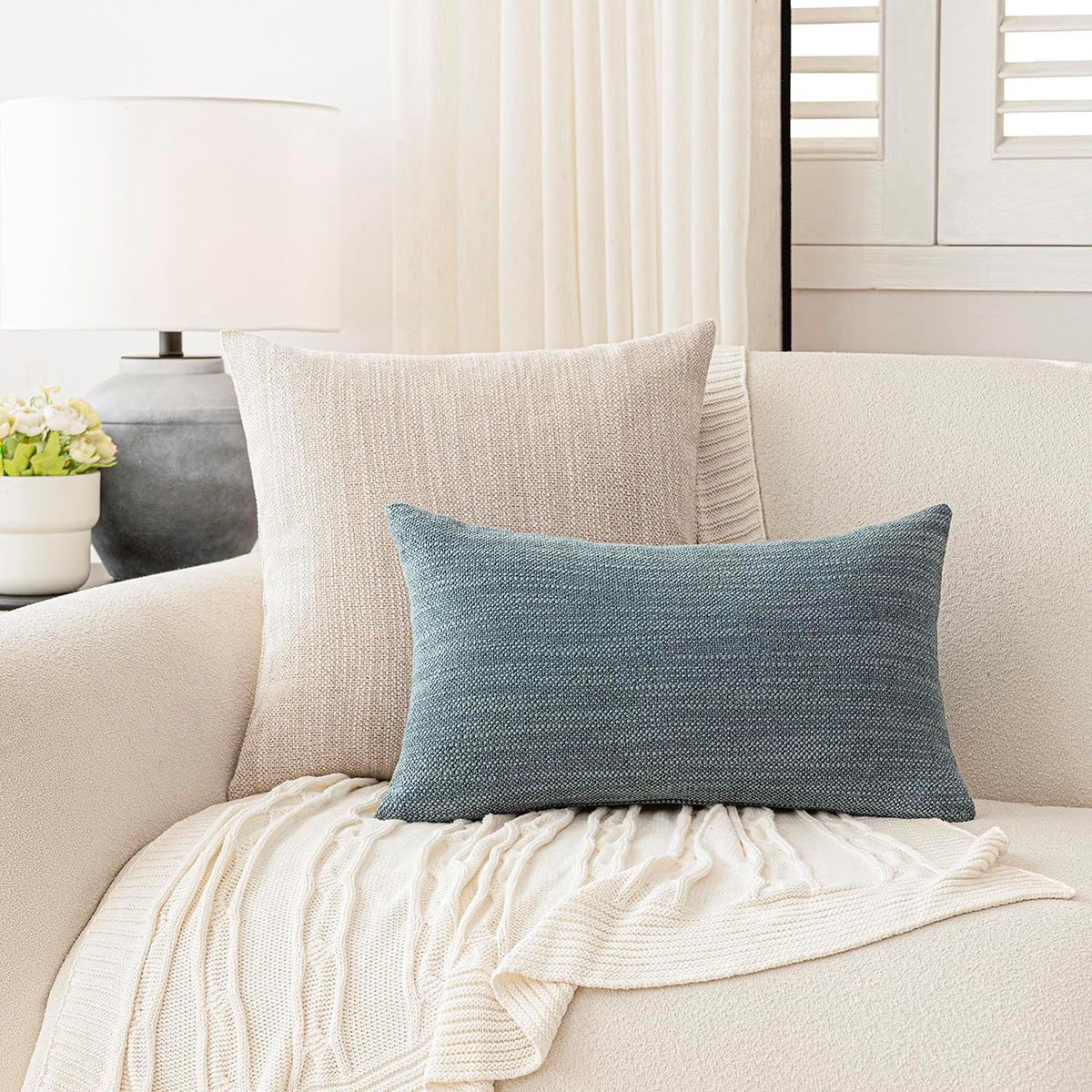 Set of 2 Decorative Textured Burlap Linen Throw Pillow Covers Farmhouse Boho Lumbar Cushion Cover Solid Accent Pillowcase,Blue Gray